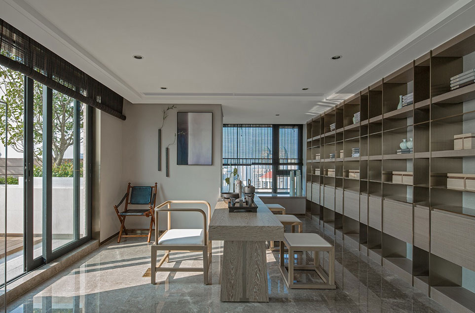 拆除阳台平移门,做全包封窗,地砖通铺至阳台,把客厅与阳台融为一体,大大提高了空间的利用率。