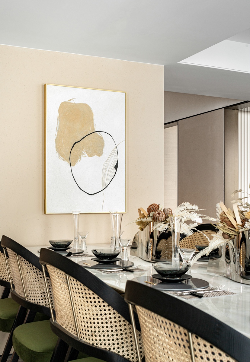 核心主张:以“当代奢华”为骨架,“艺术张力”为血脉,在空间的每一处棱角与线条里,编织理性秩序与感官愉悦的双重体验——让家成为既适配精英审美,又容纳烟火温度的“艺术化生活容器”。