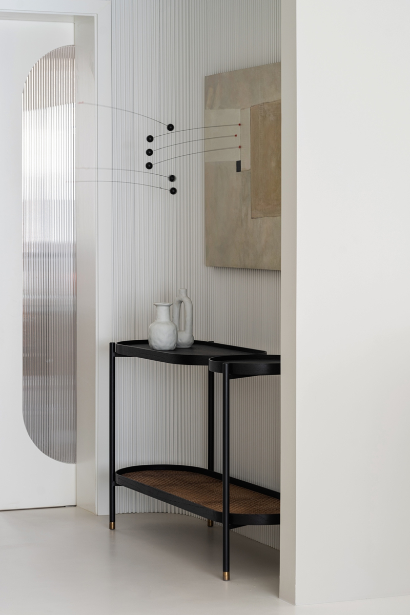 莫兰迪灰墙沉淀白日的疲惫,暖棕床品裹住深夜的松弛。透明边几、褶皱台灯的精致细节,与藤编篮的自然肌理共生,艺术挂画的抽象线条里,藏着只有大人能读懂的静谧。关上门,便是卸下“父母”身份、回归自我的疗愈场域。