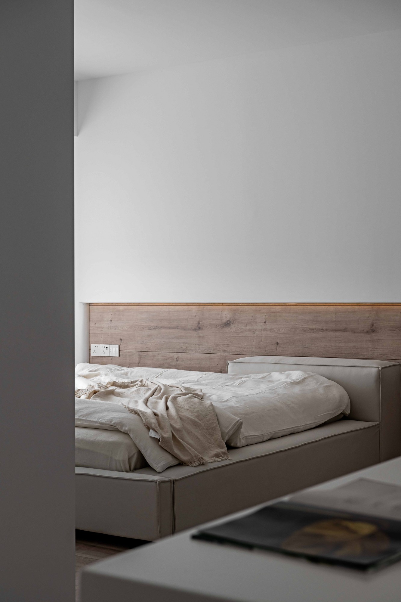 木质床头背景墙的天然纹理,与浅米色软包床具相融,营造出疗愈系的休憩港湾。轻柔的纱帘让光线变得温柔,晨起时,阳光似薄雾般漫进房间; bedside的艺术边几小巧别致,为睡前阅读或晨起小憩提供了专属角落。整个空间摒弃多余装饰,以材质的本真触感,包裹住每一个疲惫的夜晚,让睡眠成了最治愈的仪式。