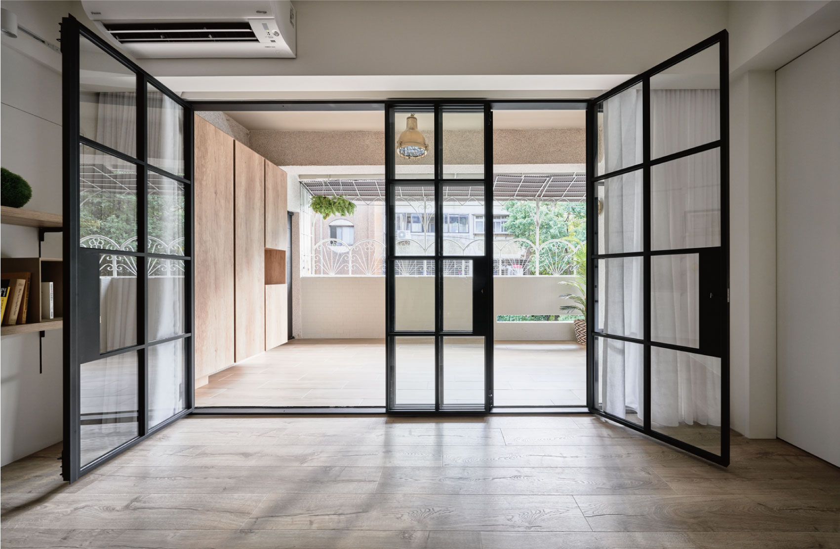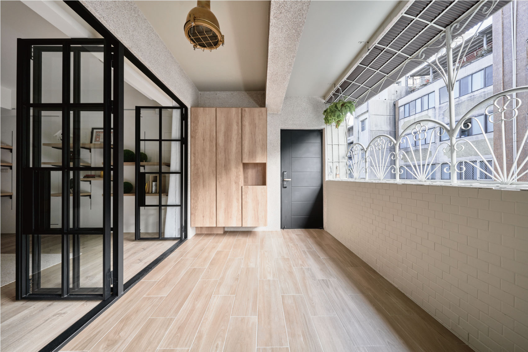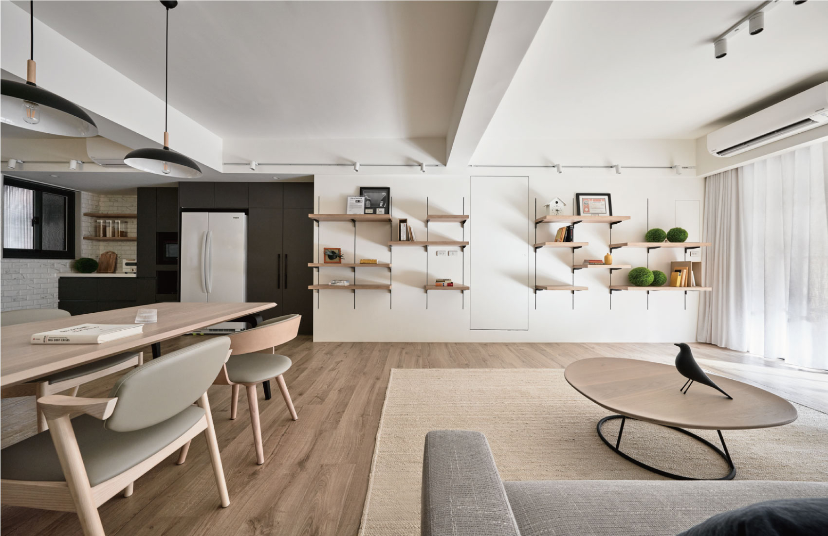 这套住宅是轻复古+现代简约的混搭风,在“干净通透”的基础上,用细节藏了不少复古质感,既清爽又有温度: