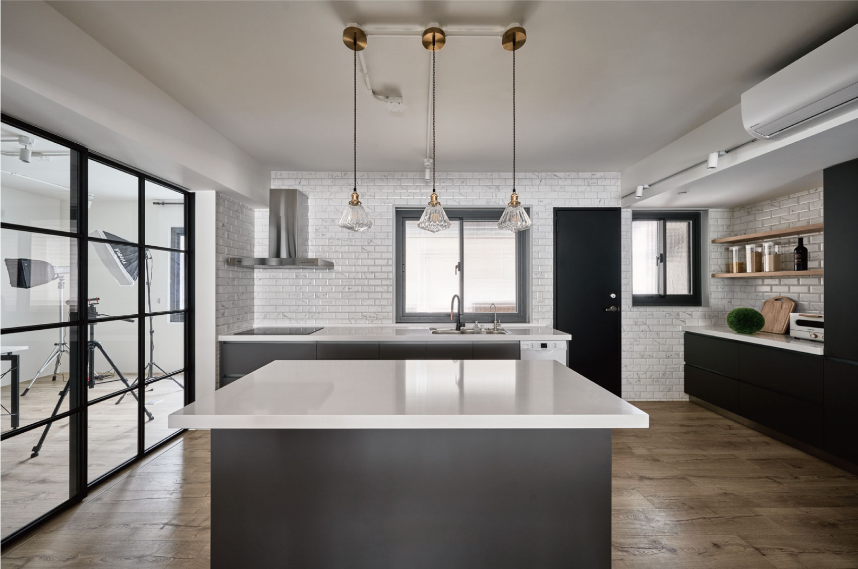 2. 厨房:黑白撞色+复古元素