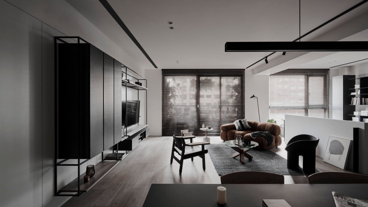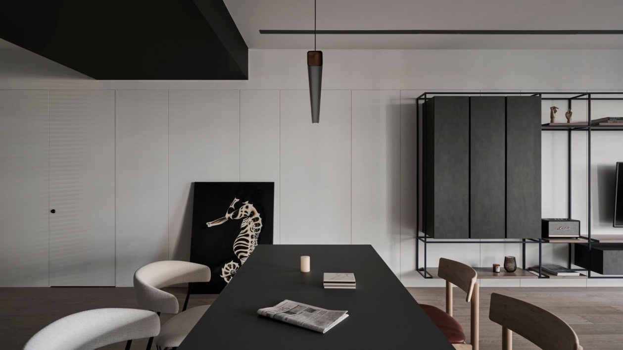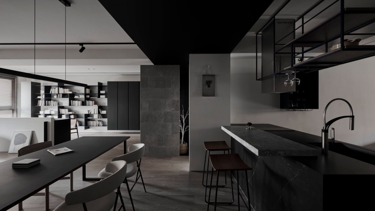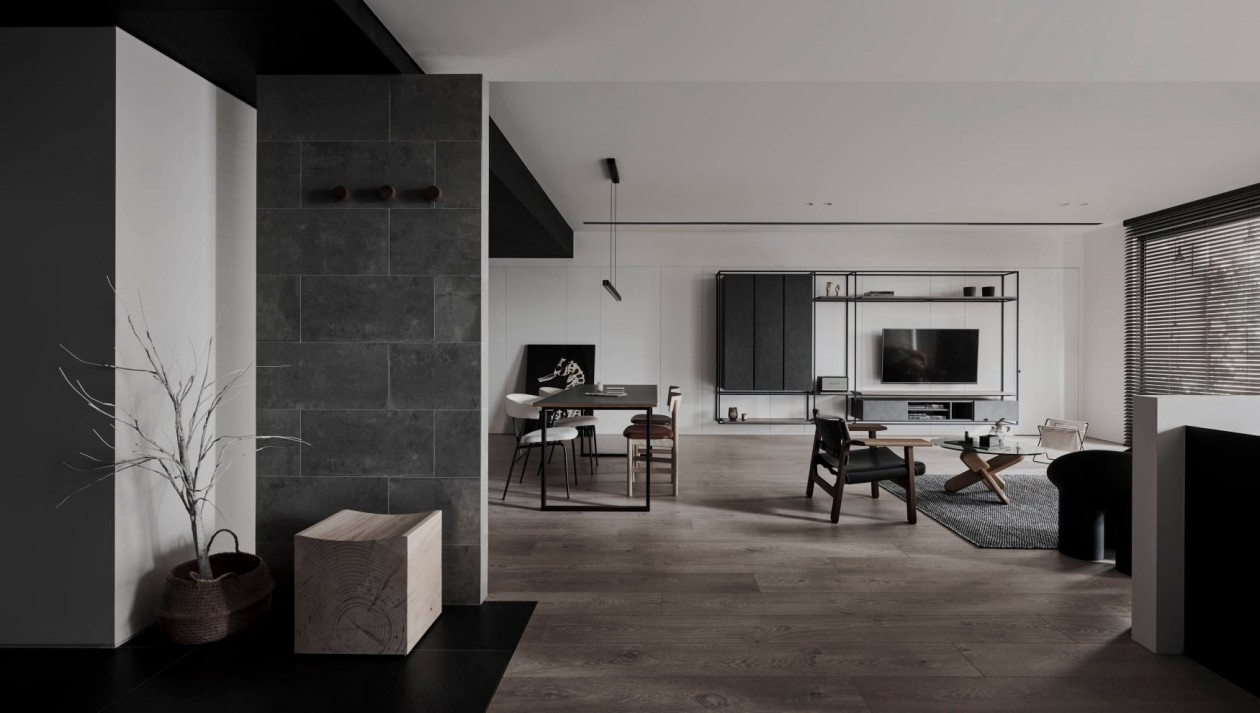 这套暗黑系极简住宅,以“克制的质感”为核心,在黑白灰的基底里,藏着对空间与生活的精准表达: