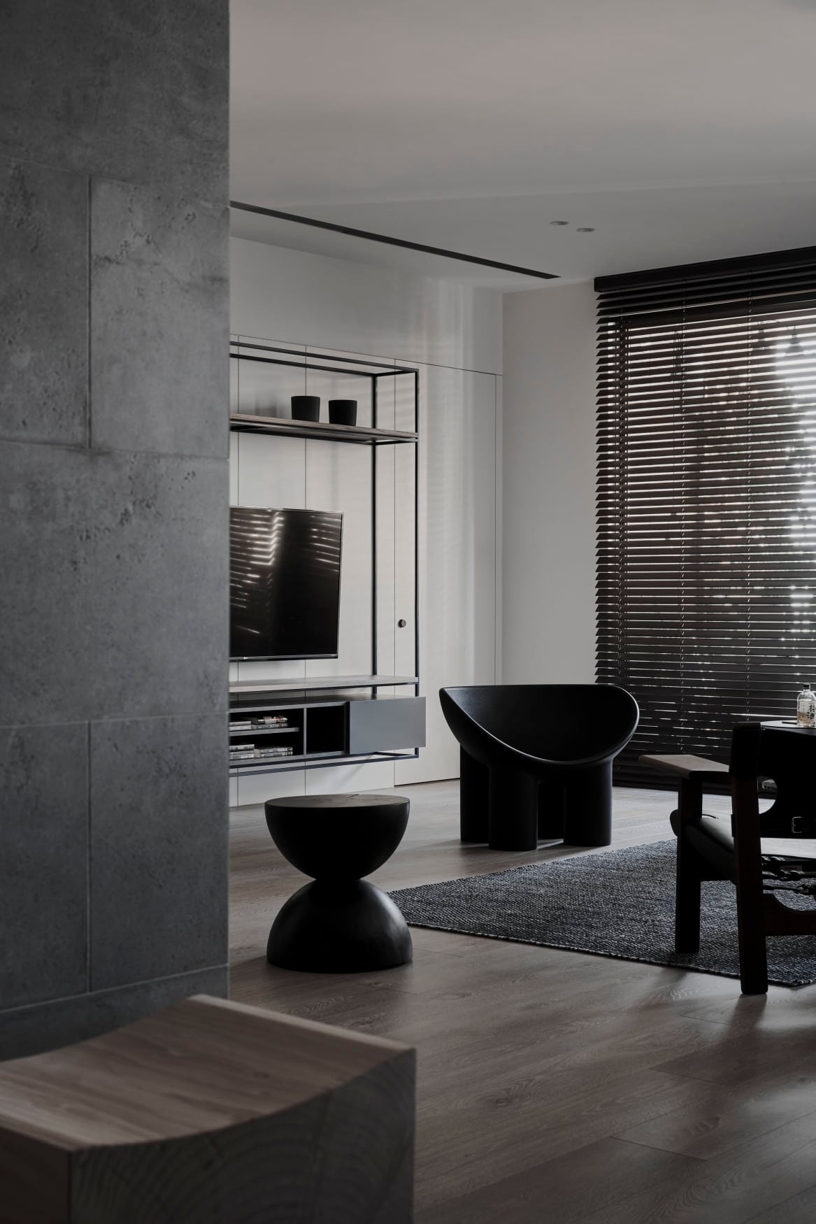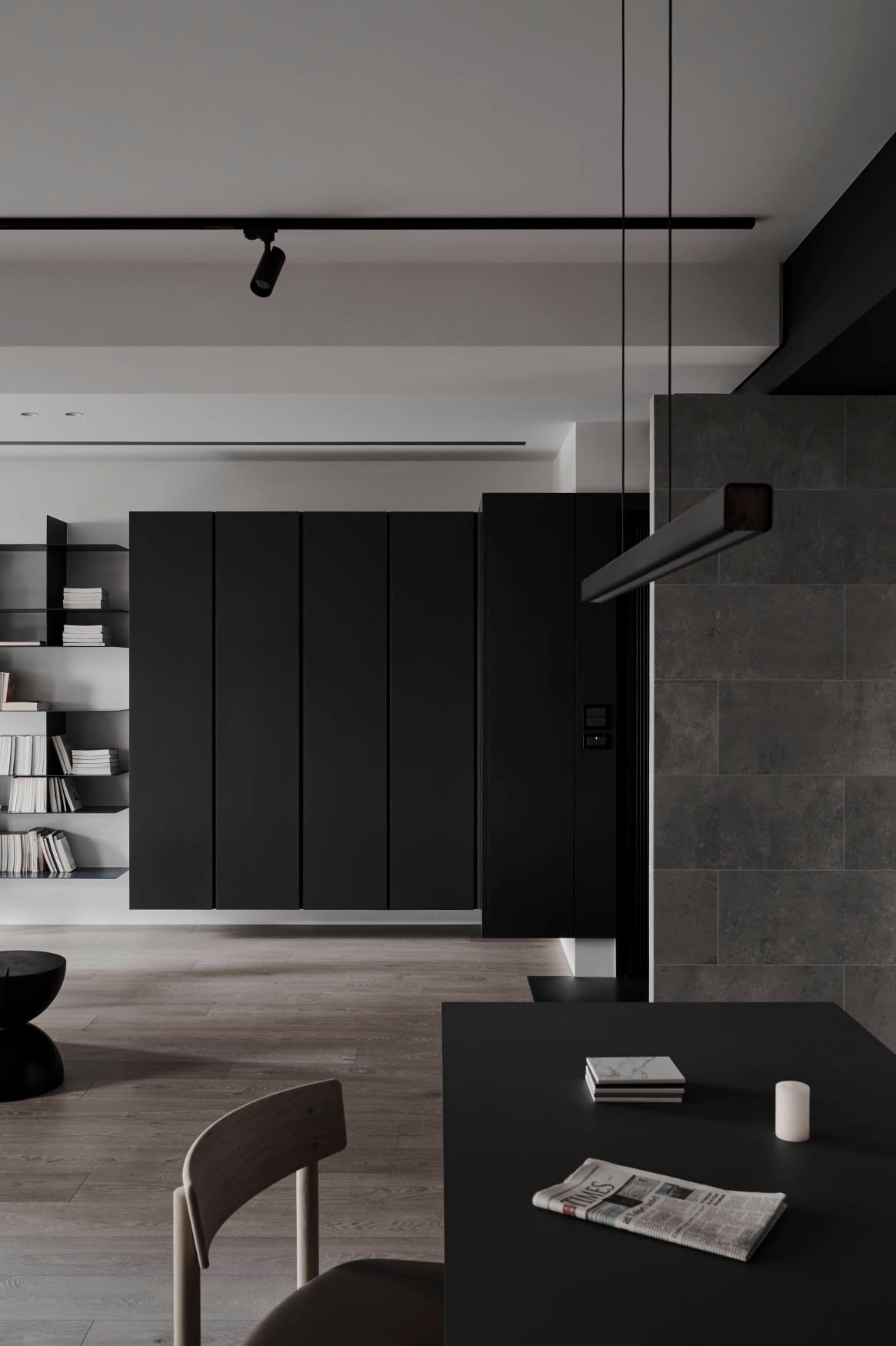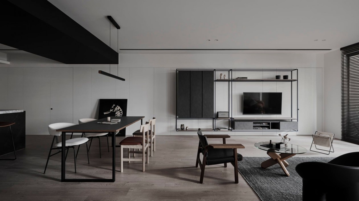 这套暗黑系极简住宅,以“克制的质感”为核心,在黑白灰的基底里,藏着对空间与生活的精准表达: