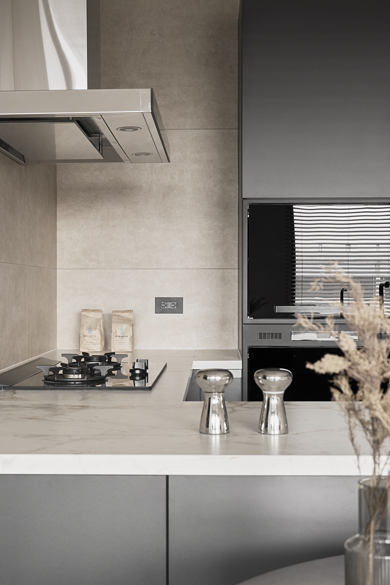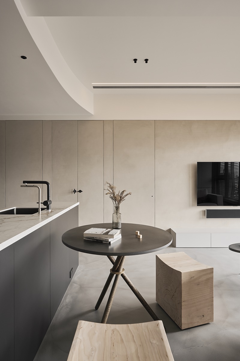 这套空间是**“极简侘寂+现代功能”**的融合设计,从公区到私域都藏着细腻的巧思:
