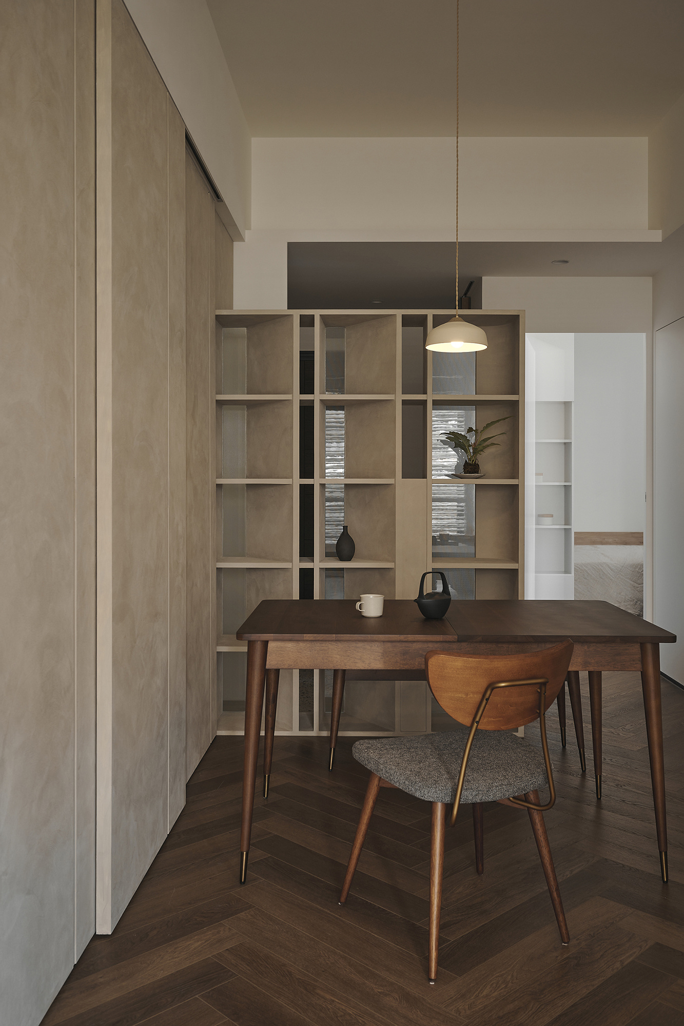 这是一套暖调极简风住宅,以浅米色、木色为主调,通过统一材质与隐形式设计营造柔和松弛的氛围,:
