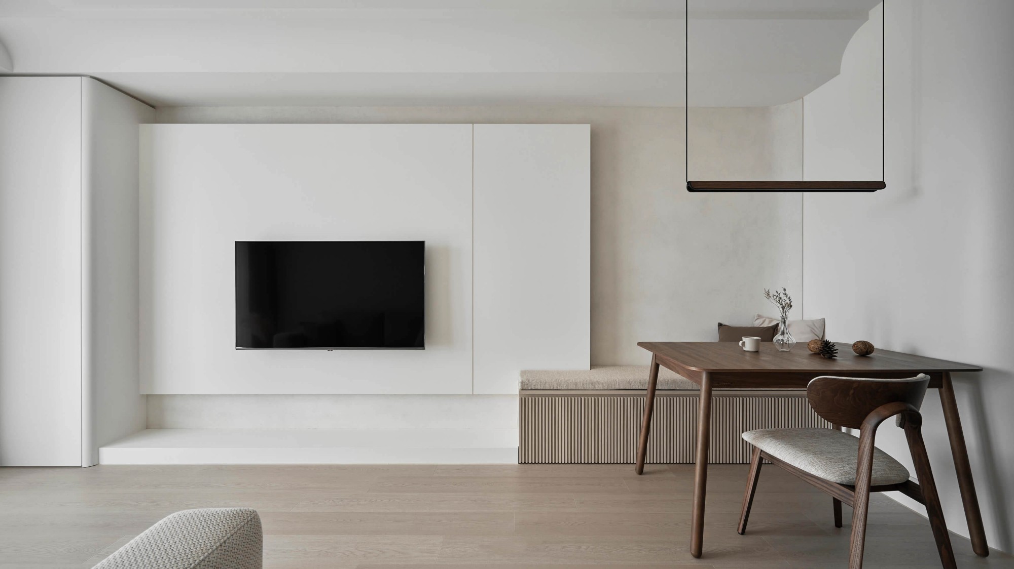 • 卧室:三层窗帘滤出朦胧的窗景,悬浮柜+木饰面床头让空间“轻”下来,全白床品裹着蓬松的软,躺下就是被温柔裹住的安全感。