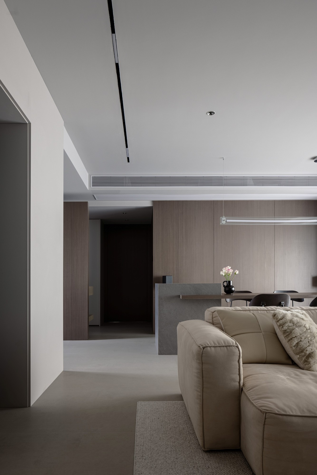 这个家是「克制高级的极简侘寂风」,用低饱和色调+质感材质,把“冷调高级”和“暖感松弛”平衡得刚好:
