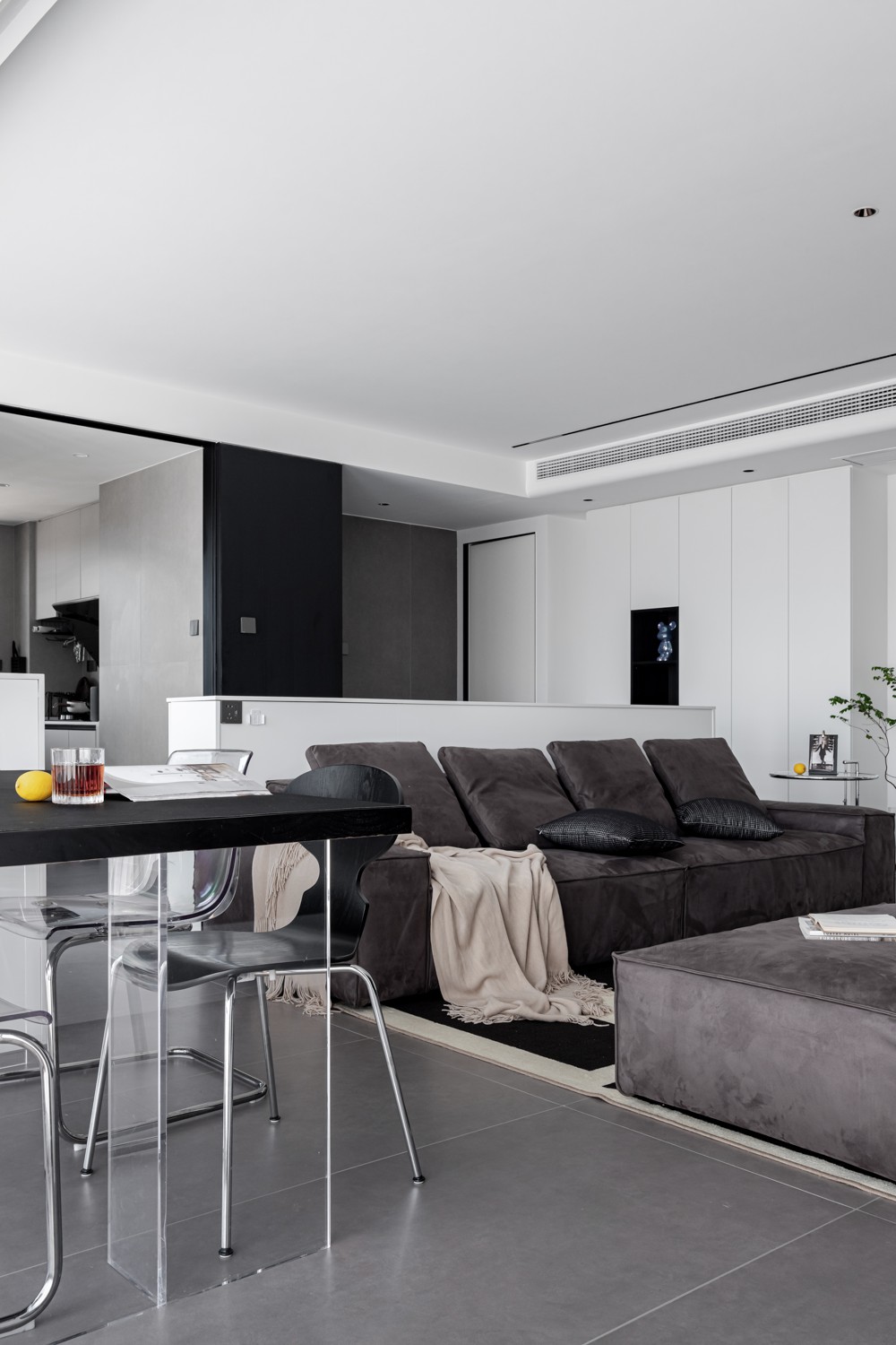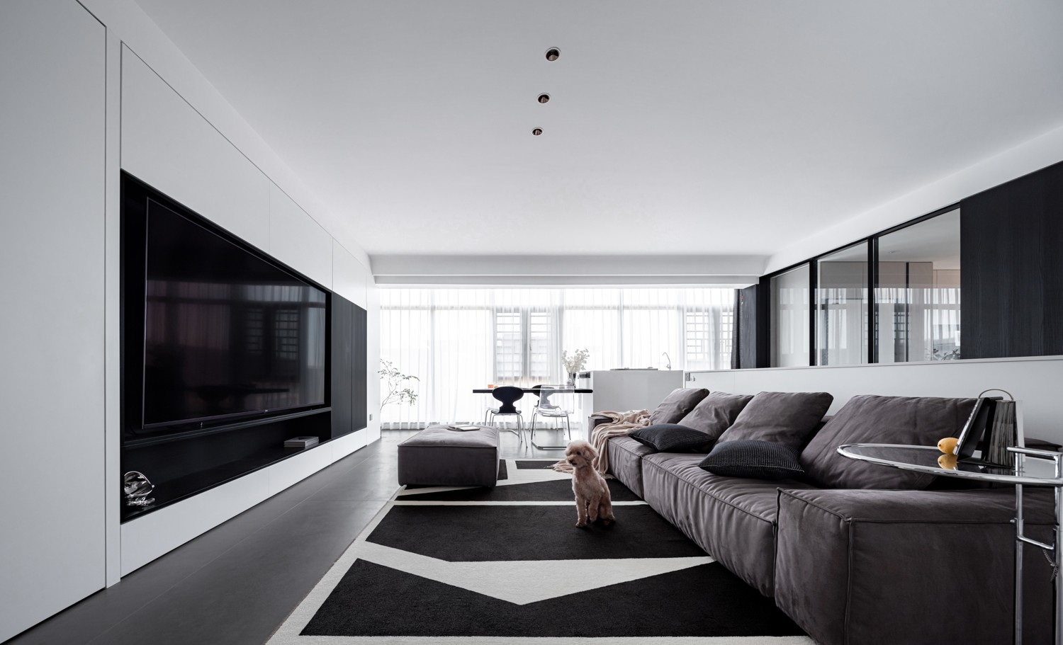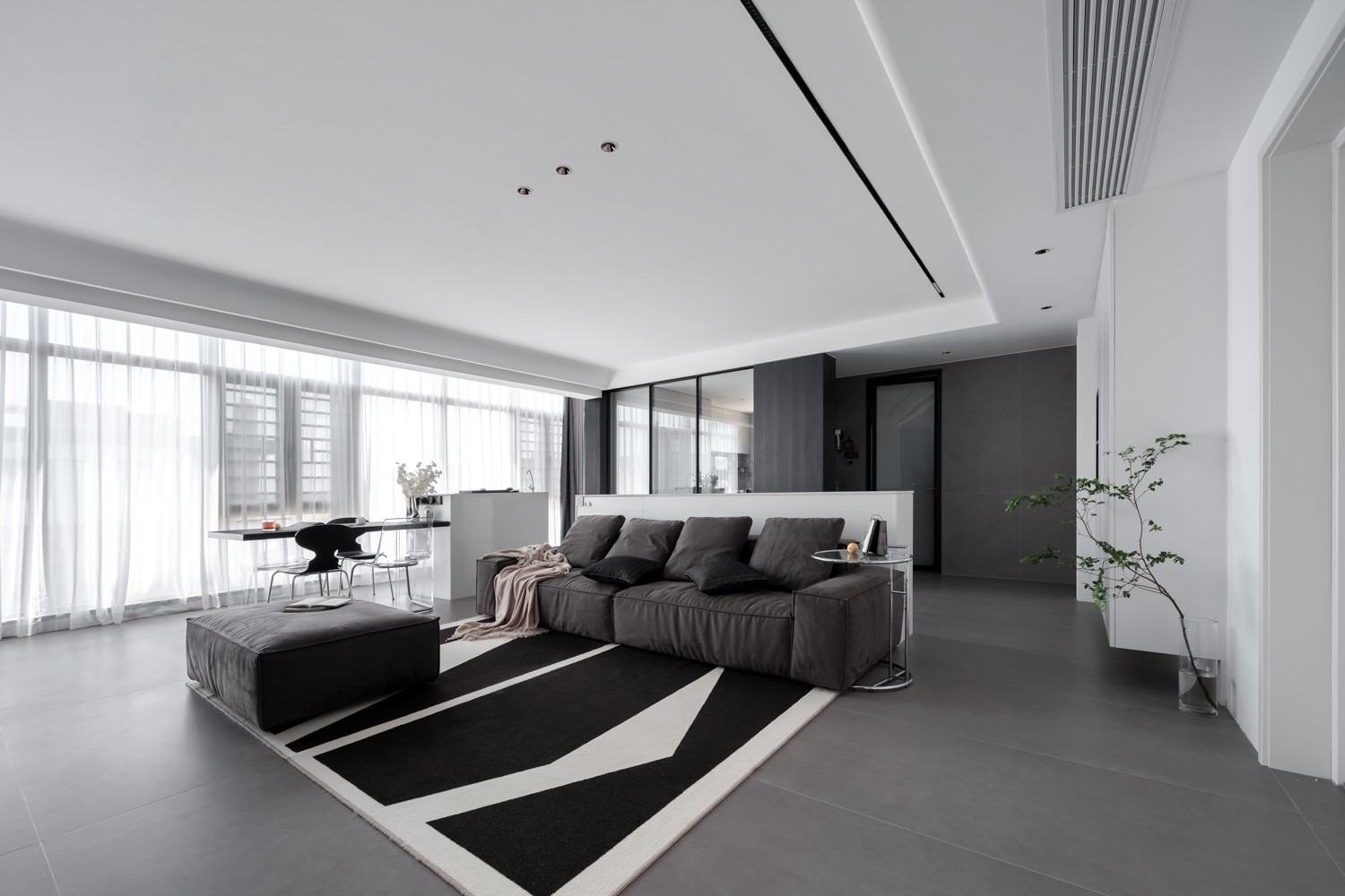 这套黑白灰现代极简风住宅,以“克制的线条+通透的场域”为核心,把理性美学与生活温度揉进每一寸空间,更是为“人宠共生”量身定制的舒适容器。