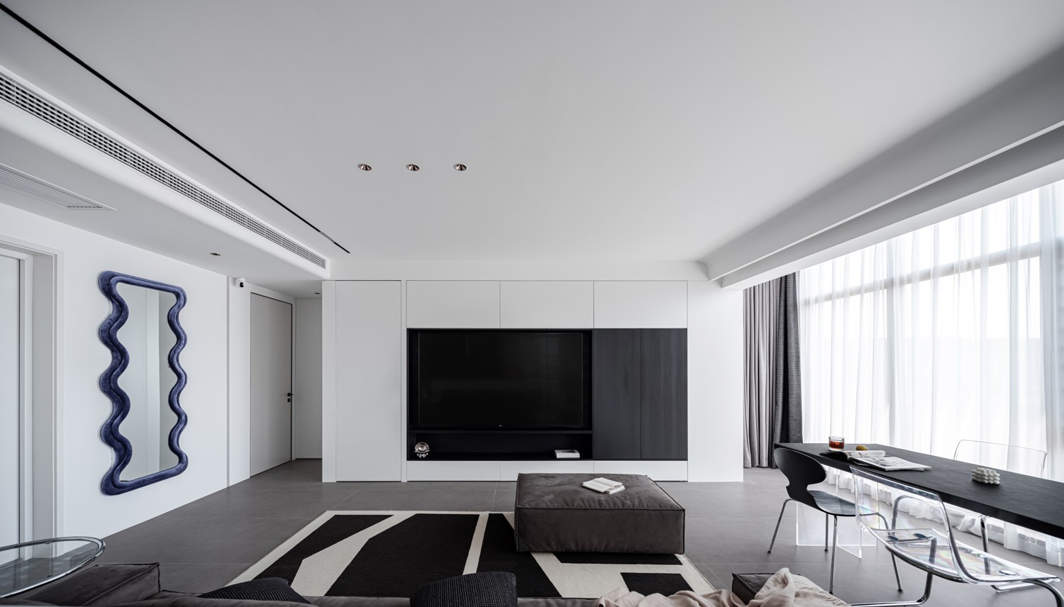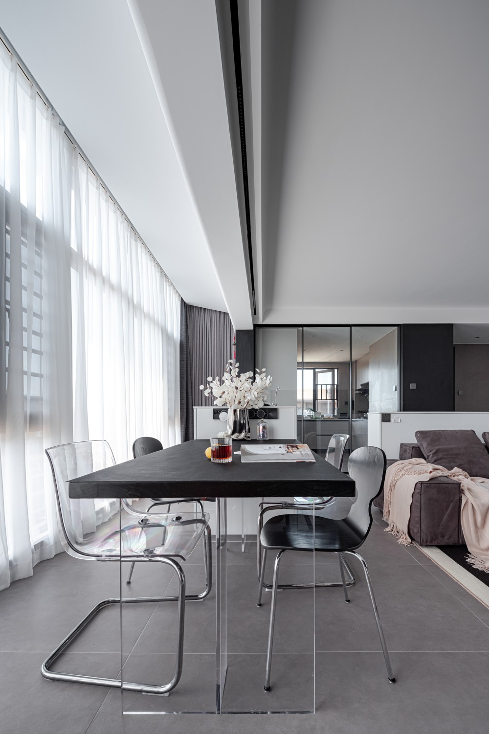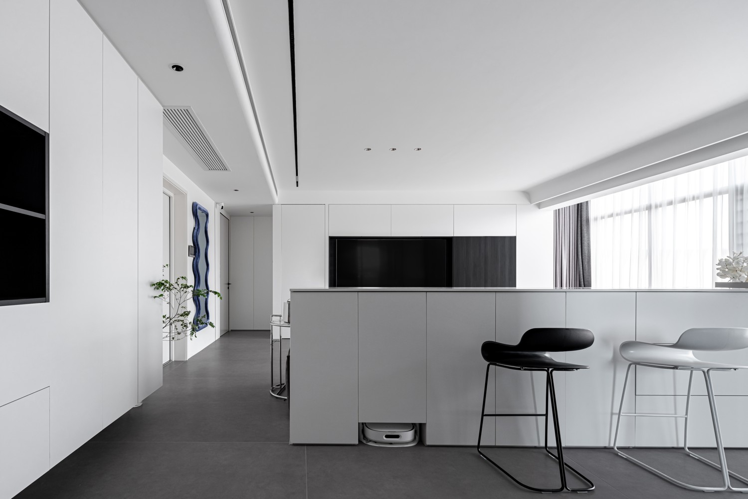 这套黑白灰现代极简风住宅,以“克制的线条+通透的场域”为核心,把理性美学与生活温度揉进每一寸空间,更是为“人宠共生”量身定制的舒适容器。