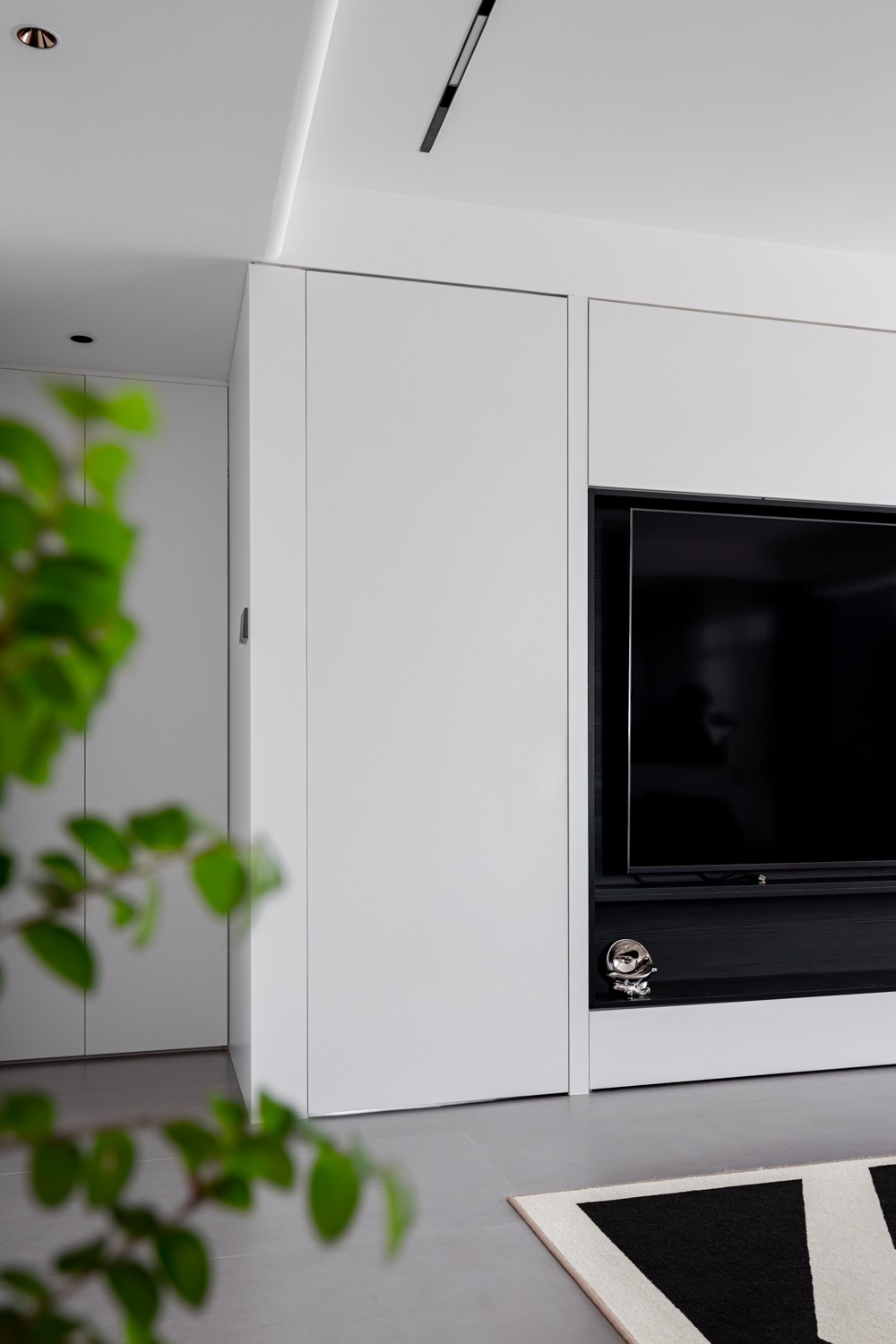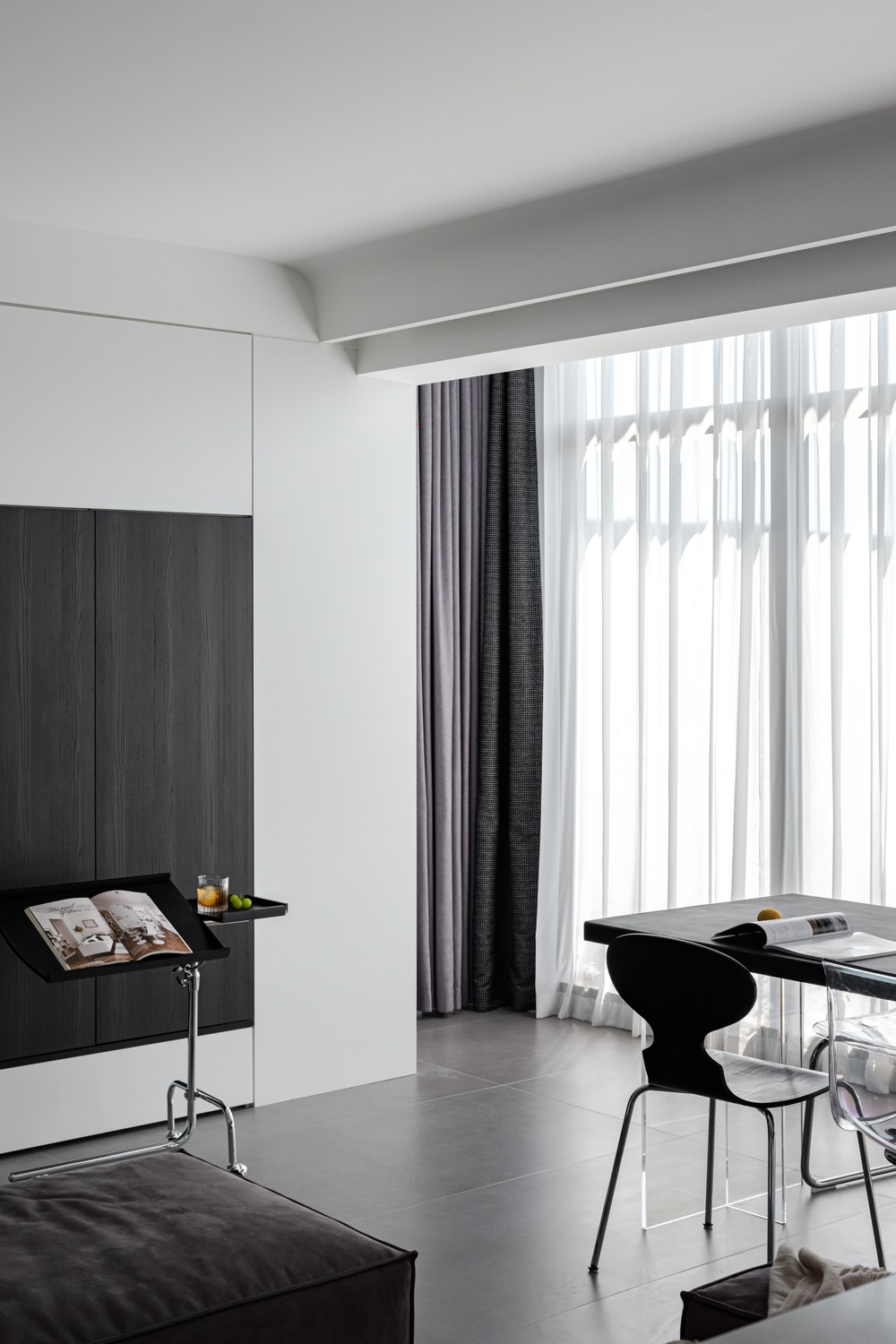这个家的妙处,是用黑白灰写理性,用软物填温度:既装得下成年人的秩序,也容得下毛孩子的肆意,每一处都是“刚好合适”的松弛。