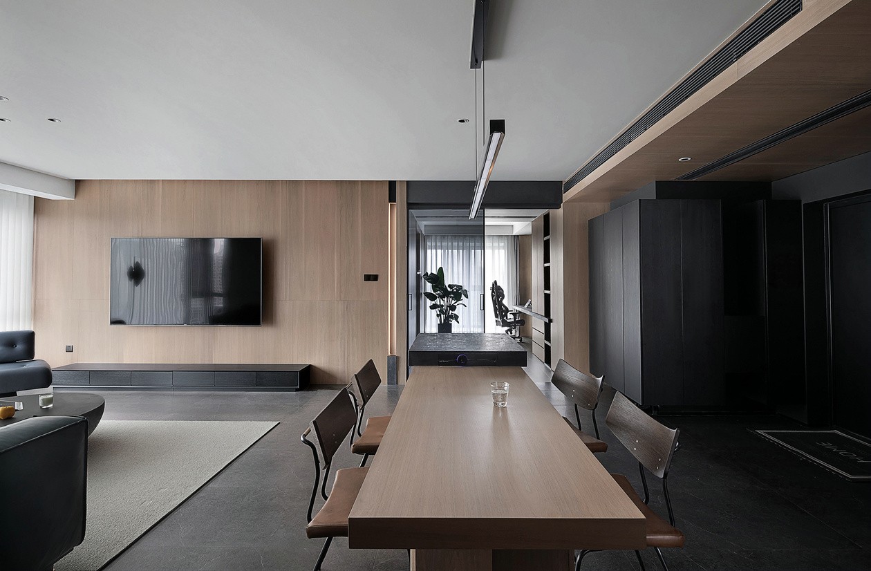 这个家的妙处,是用深色调做骨架,用木与软物填温度:既撑得起“高级感”的体面,也装得下“葛优躺”的随性,每一处都是“刚刚好的舒服”。
