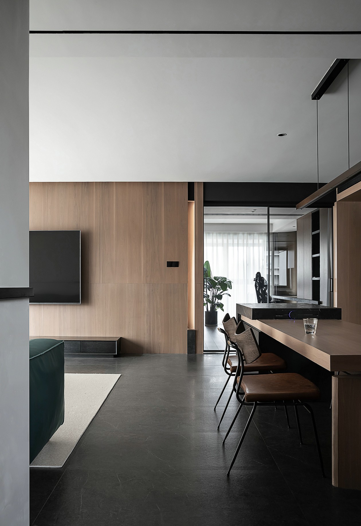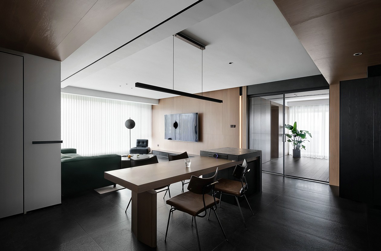 这套墨绿+木调的极简住宅,像一杯“冷萃咖啡”——用深色调的克制,裹着木质的暖,把高级感揉进日常的松弛里。