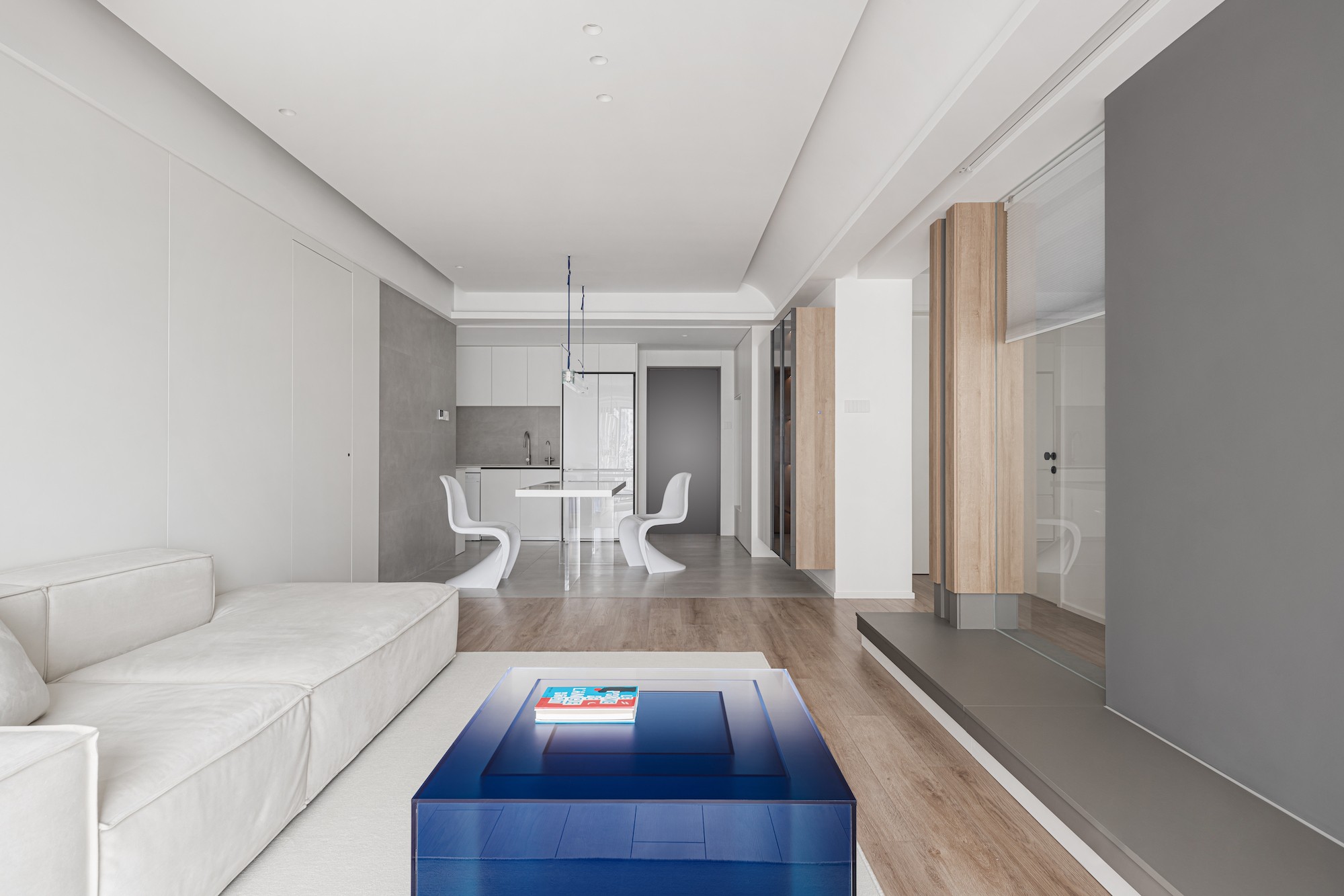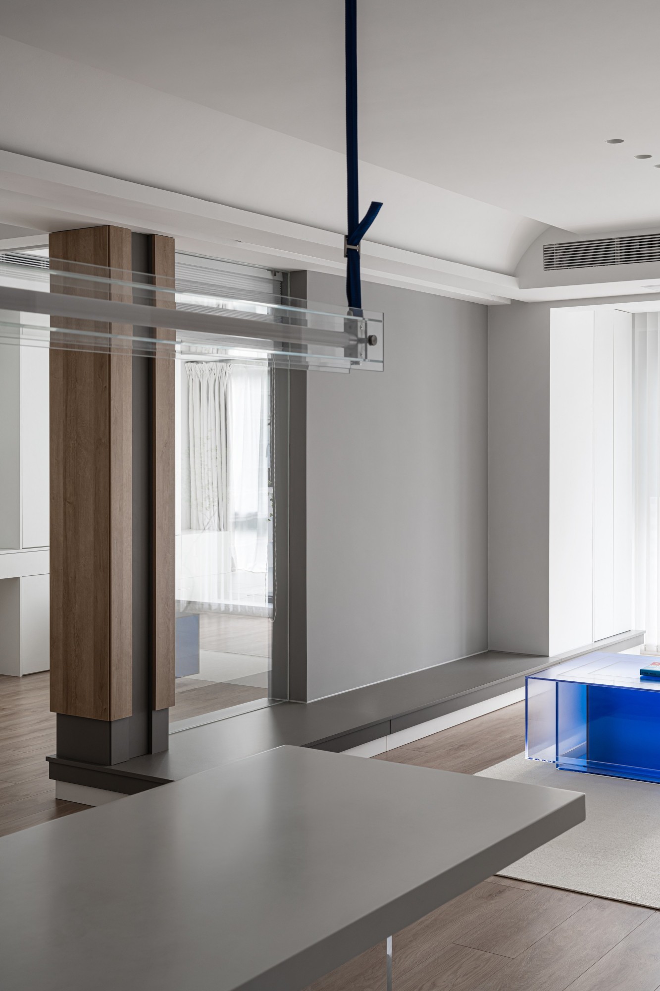 没有多余装饰,却在材质(玻璃的透、亚克力的轻、木的暖)与光影里,把“呼吸感”揉进每处——