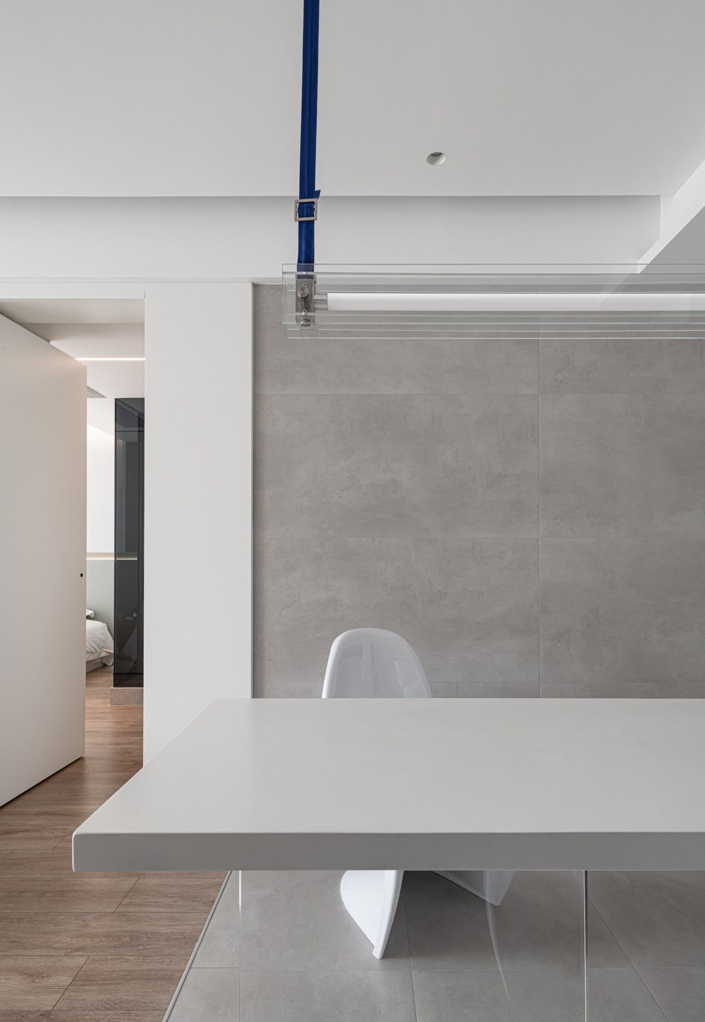 这是一套140㎡“冷调极简+通透质感”的现代住宅,用「白+灰+玻璃蓝」的克制配色,把“通透”与“秩序”揉进每处空间,像把城市里的冷静松弛感搬进了家。