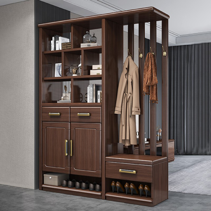 内嵌式换鞋凳,方便换鞋;上方还可以用来挂大衣、帽子,为出行和整理提供便利