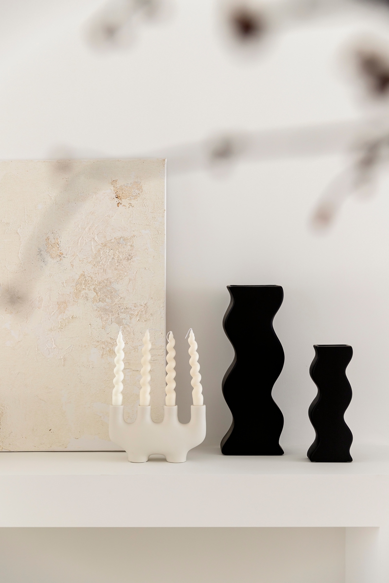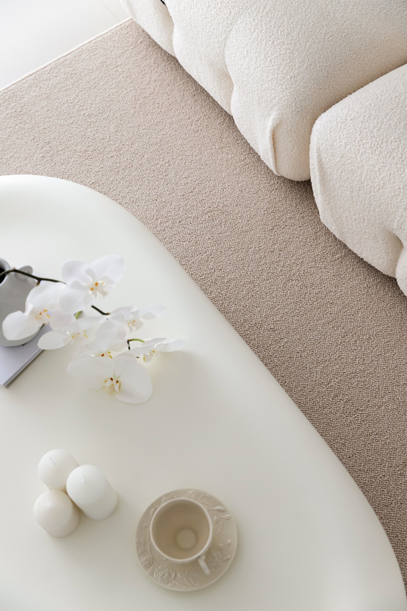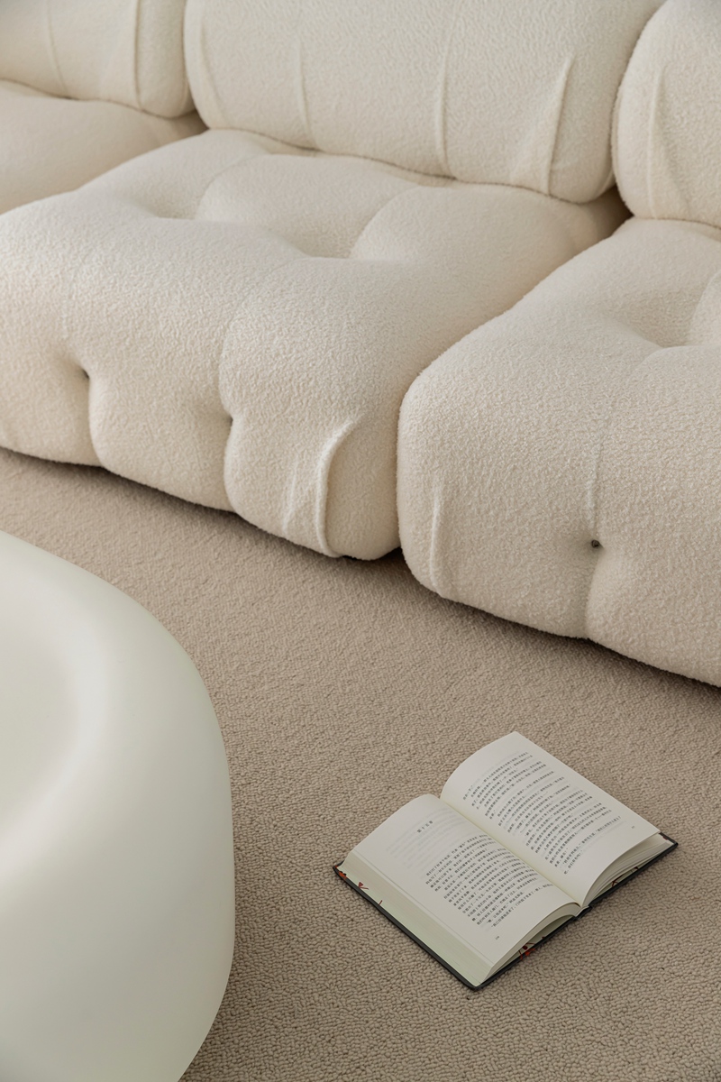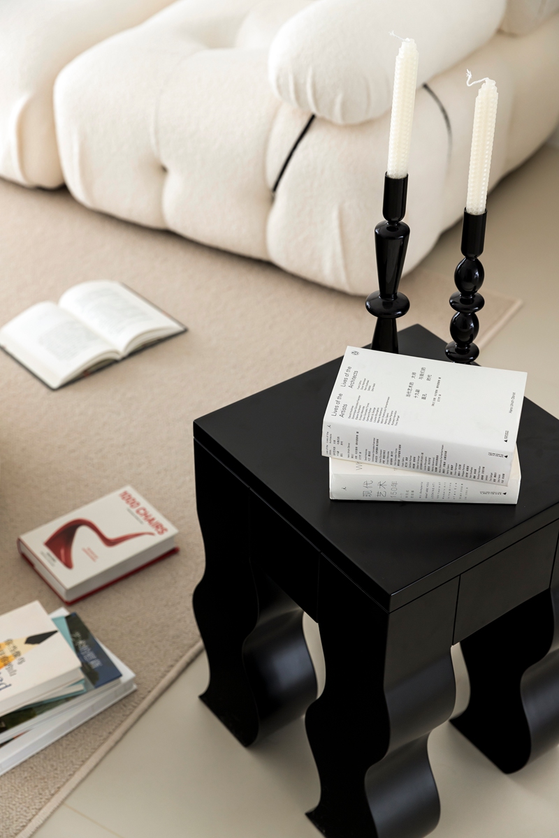 全白基底如一张干净画布,毛绒沙发的柔软弧度、异形茶几的圆润轮廓,消解了极简的冷硬感;拱形置物架隐于光影中,艺术感落地摆件似抽象雕塑,阳光透过薄纱时,整个空间都在“什么都不刻意”的松弛里轻轻呼吸。