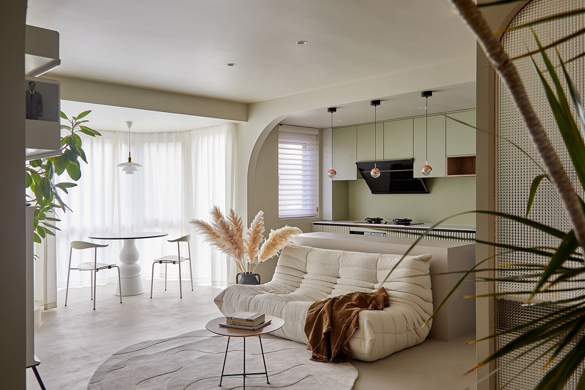 以柔和弧线为笔、温暖色系为墨,在空间里织就一张“松弛感的网”,让每一次归家都像投入温柔的怀抱。