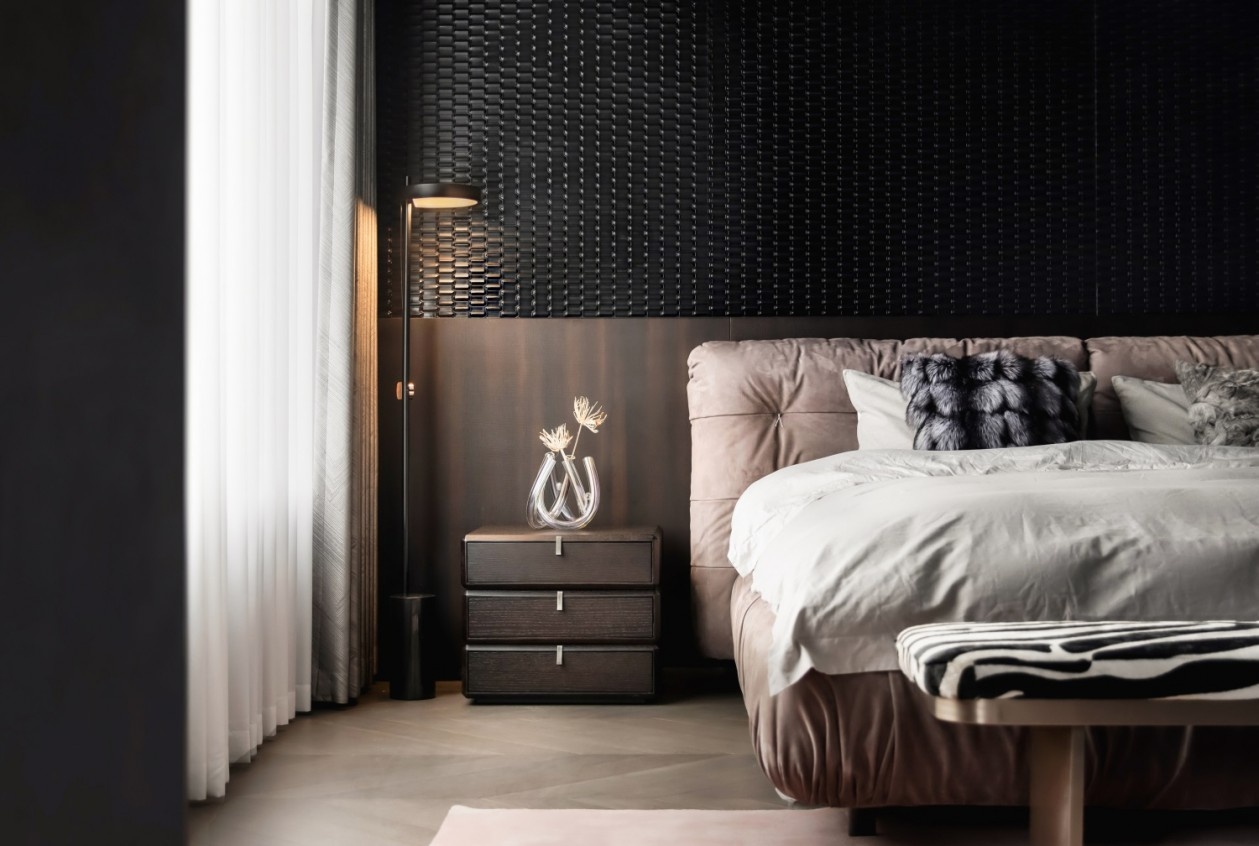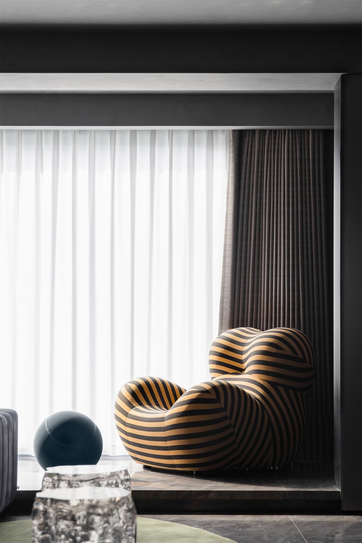这套设计以暗黑为底色,却绝非压抑的代名词,而是通过材质对比、色彩点睛与艺术陈设,将“先锋”“奢华”“个性”揉成一剂猛药,治愈所有对平庸设计的审美疲劳,让家成为既适合独处沉思,又能承载潮酷社交的“当代艺术容器”。