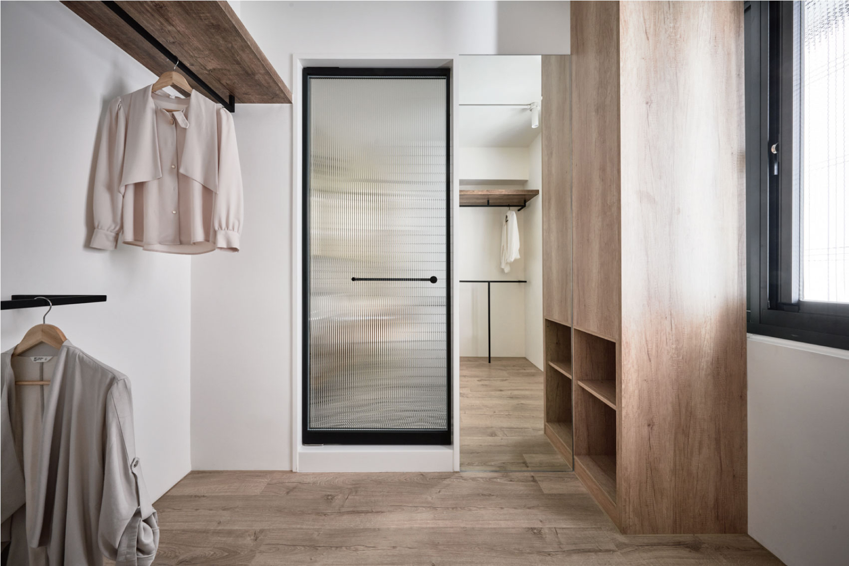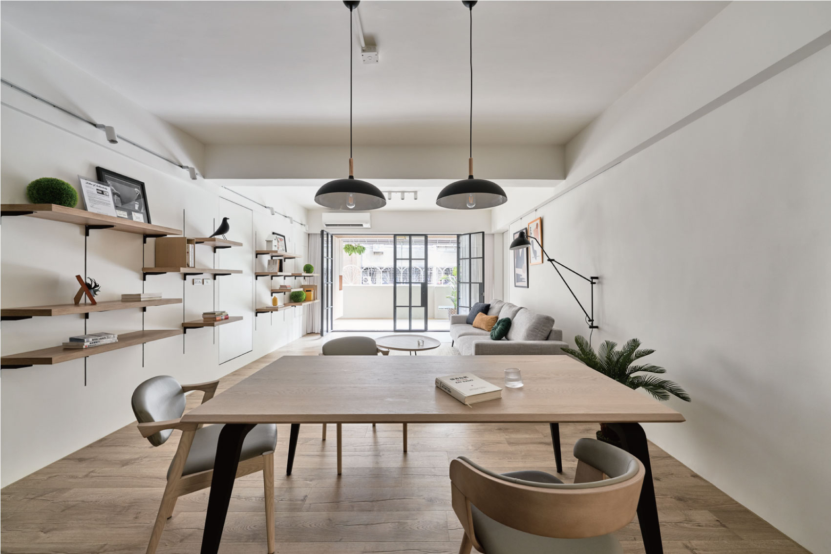 这套住宅是轻复古+现代简约的混搭风,在“干净通透”的基础上,用细节藏了不少复古质感,既清爽又有温度: