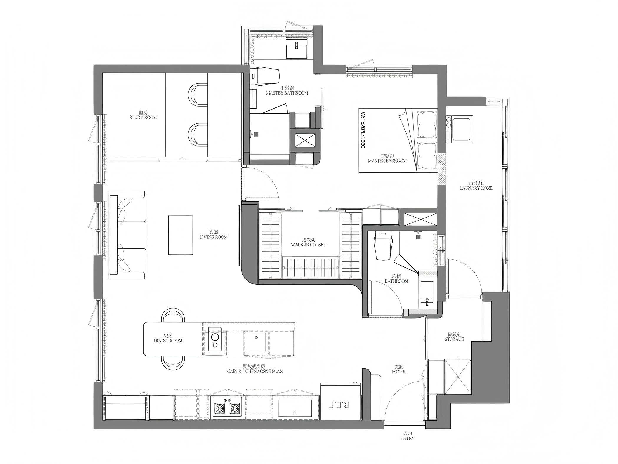 1. 餐厨区:冷调里的利落质感