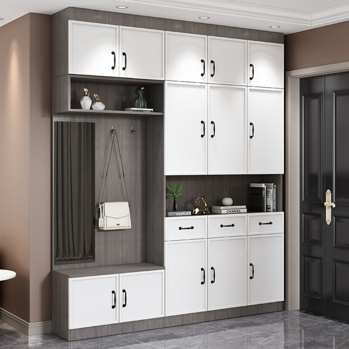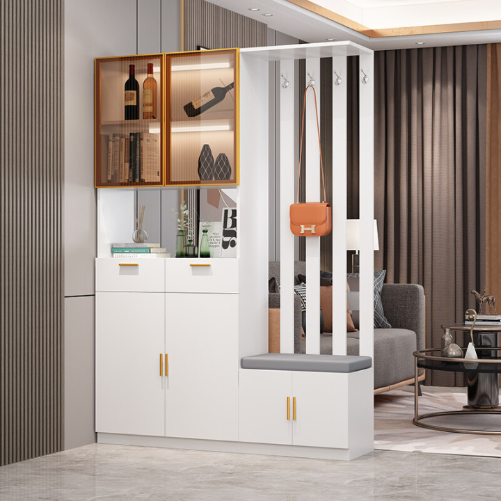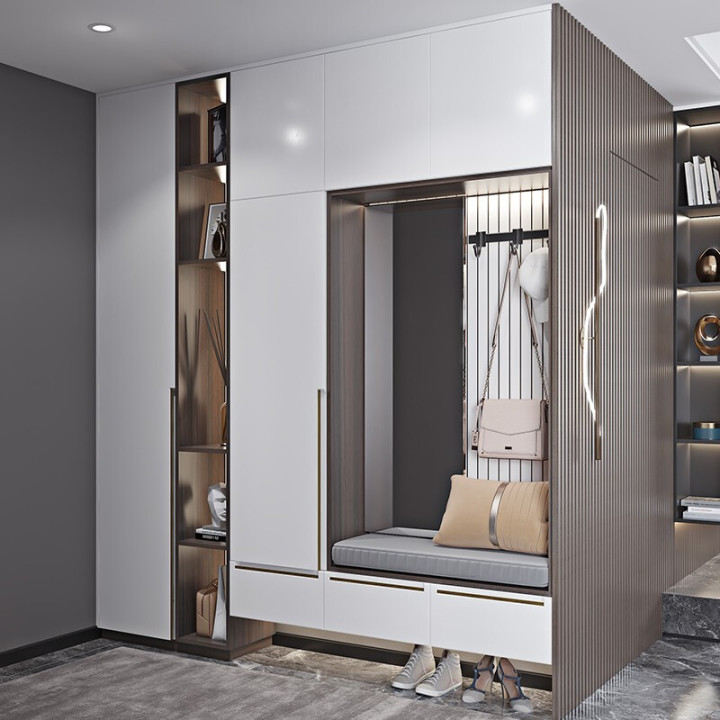 内嵌式换鞋凳,方便换鞋;上方还可以用来挂大衣、帽子,为出行和整理提供便利