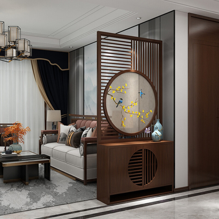 隔断型的玄关柜,可以在原本没有玄关的空间里,造一个玄关出来。隔栅的利用,保证了视野开阔性,不会觉得空间因为加了一道阻隔而缩小了;其次,保证了室内的隐蔽性,同时增强空间利用率