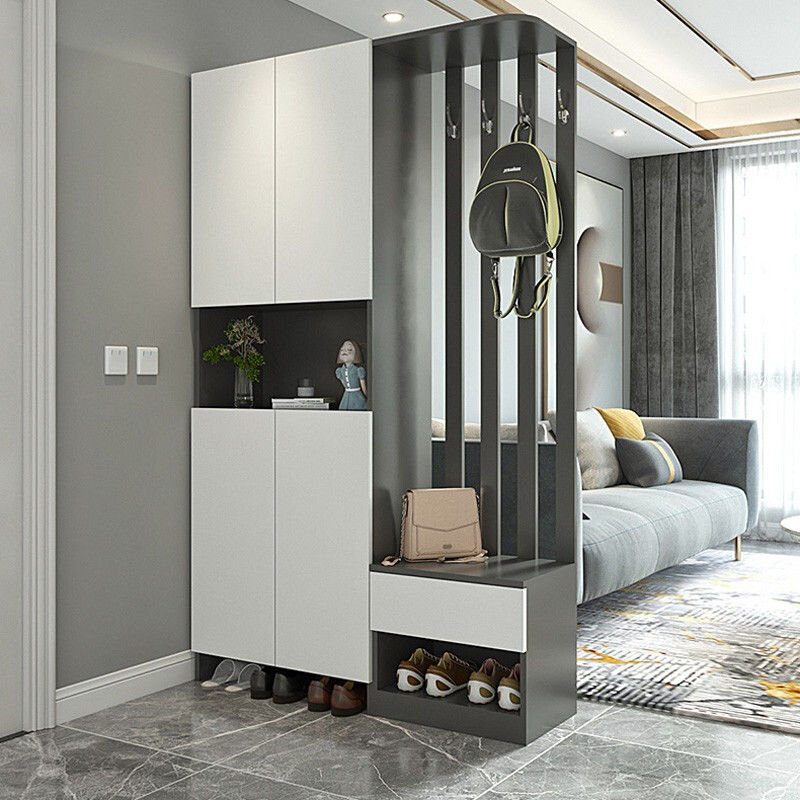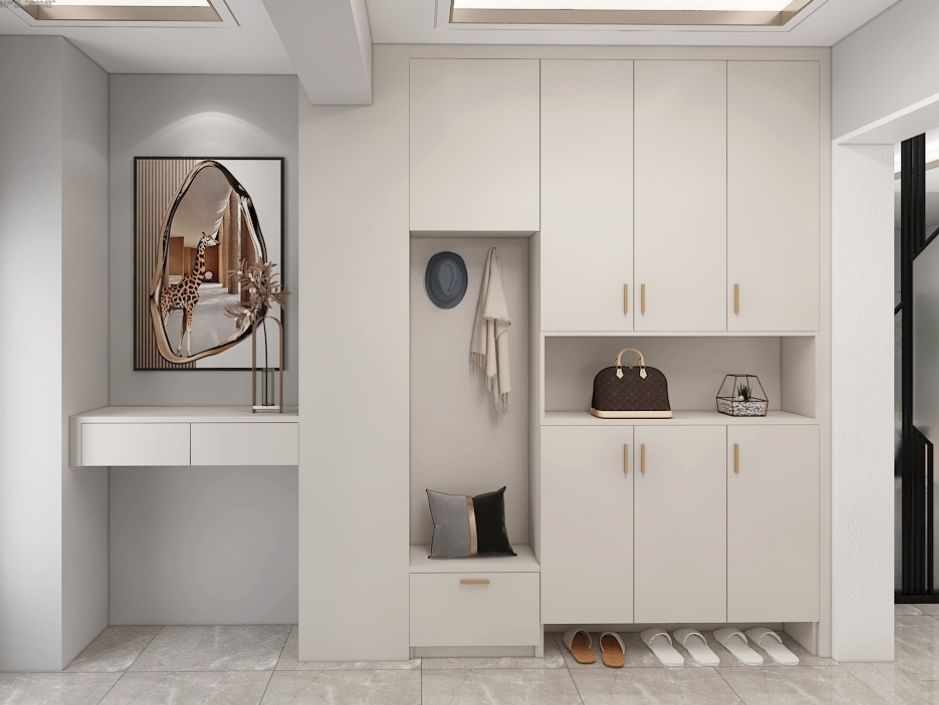 玄关柜的大小应占玄关的1/3的空间较为合适,这样玄关看起来不会空荡也不拥挤,玄关更具层次感,同时满足收纳