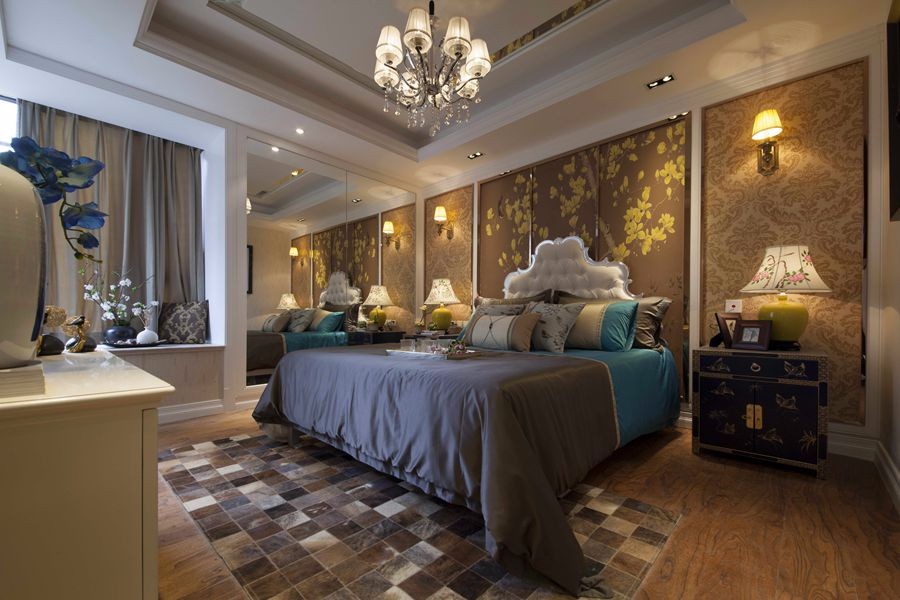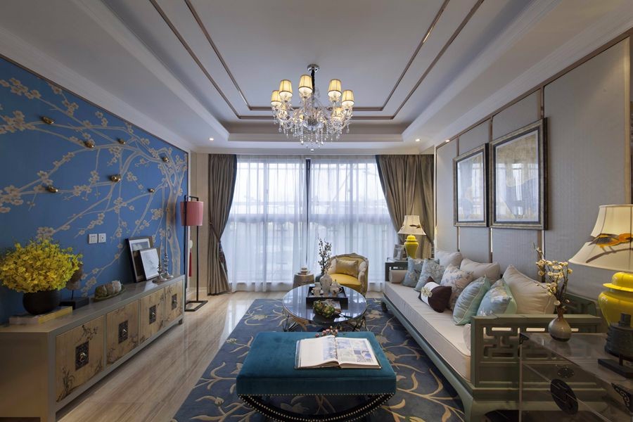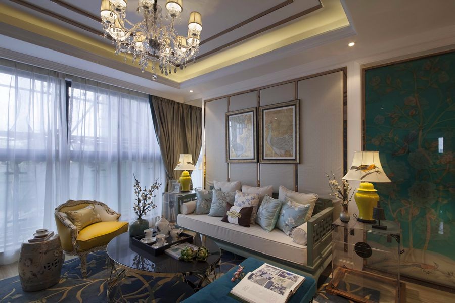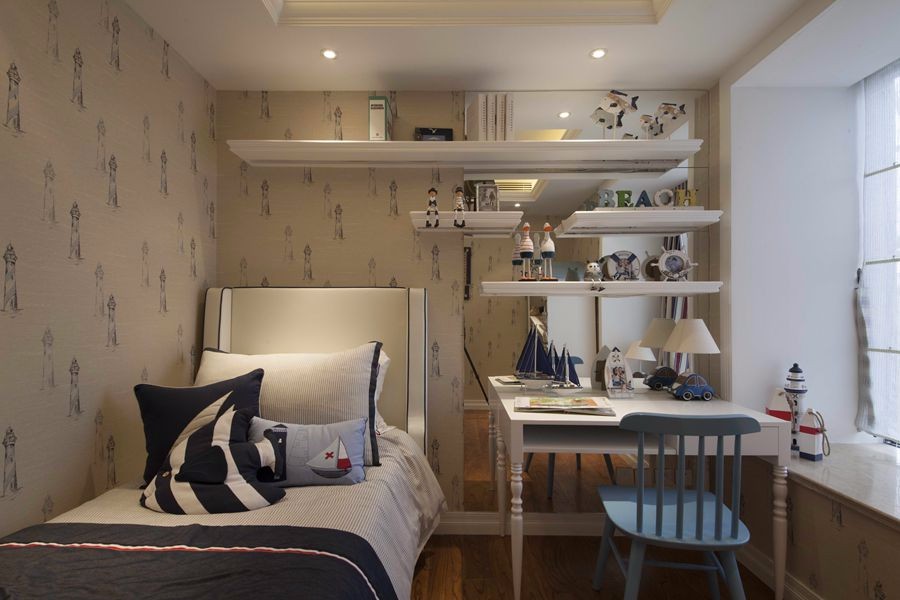 【红杉树装饰】85㎡现代美式风格新房装修,拼色线框背景墙的成熟魅力