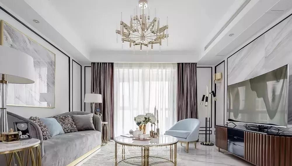 客厅加入蓝色和金色作为点睛,增加设计中沉稳奢华的元素,带来不一样的优雅与质感。