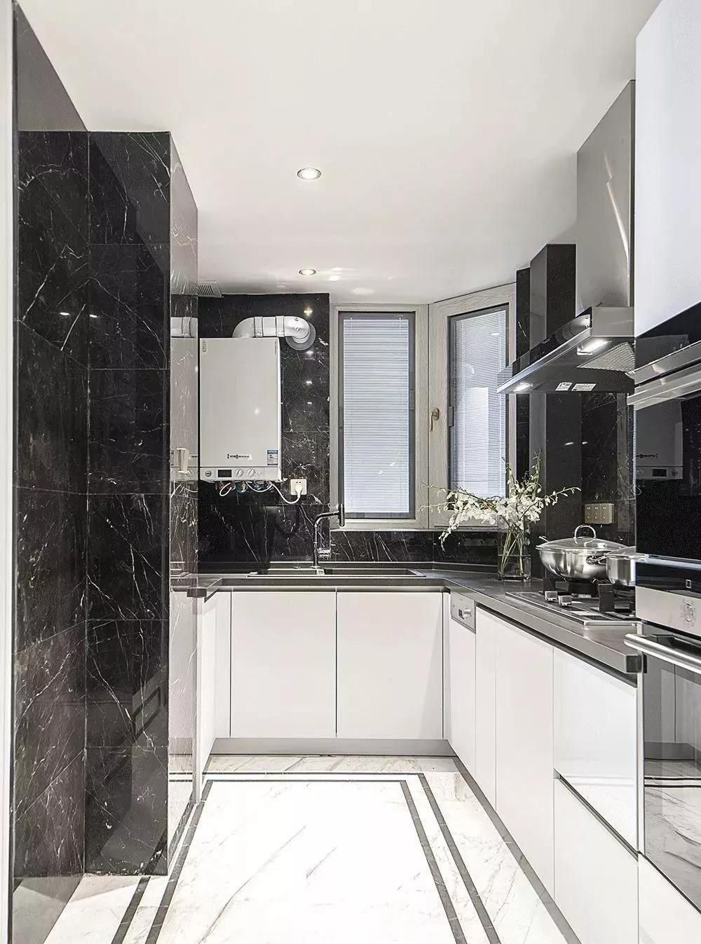 黑白搭配的厨房时尚酷雅,空间虽不大,布局却十分合理,配上一瓶鲜花,满满的清新文艺气息都快要溢出来了。