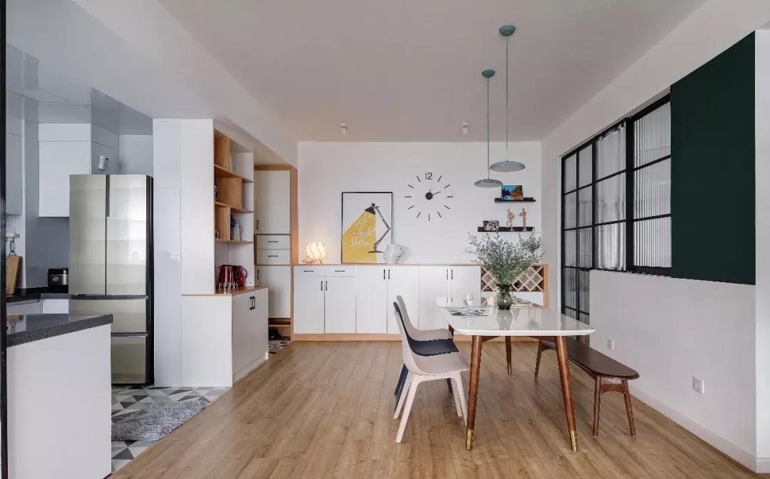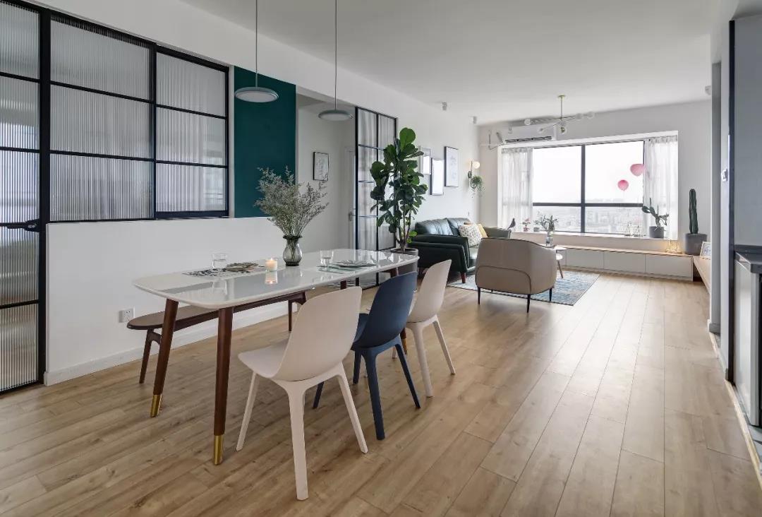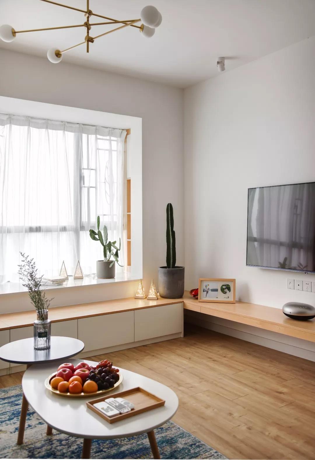 一组120平清新北欧风格新房装修案例。客厅不带阳台,做了飘窗+壁龛的实用设计,没错了,这个案例又是一个收纳控。
