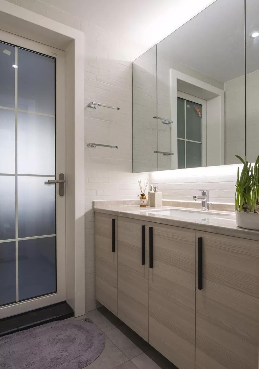 使用面积110平,总造价26万,入户右侧设计一组鞋柜,中部留空便于随手置物,底部架空放置常换穿的鞋子。