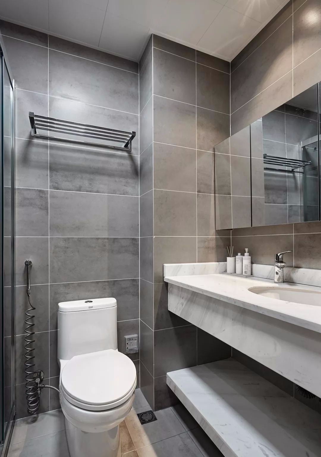 客卫面积较小,淋浴房做了三联动的移门,壁龛和镜柜都十分实用。