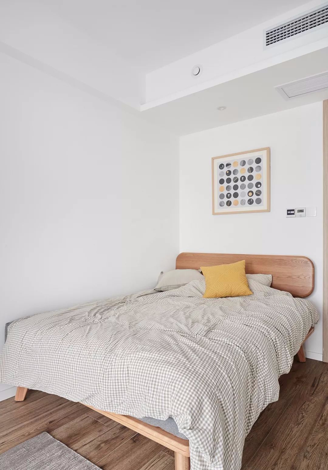 次卧实在很小,床只能靠墙放置。次卧使用频率不高,设计和布置都以简单为主。