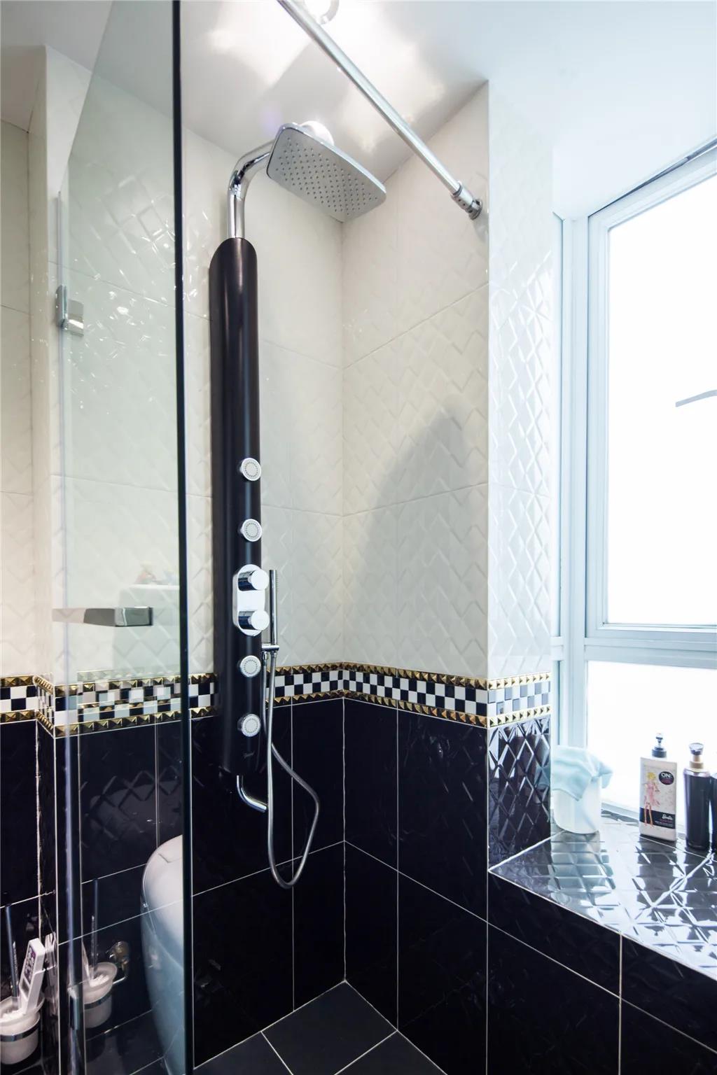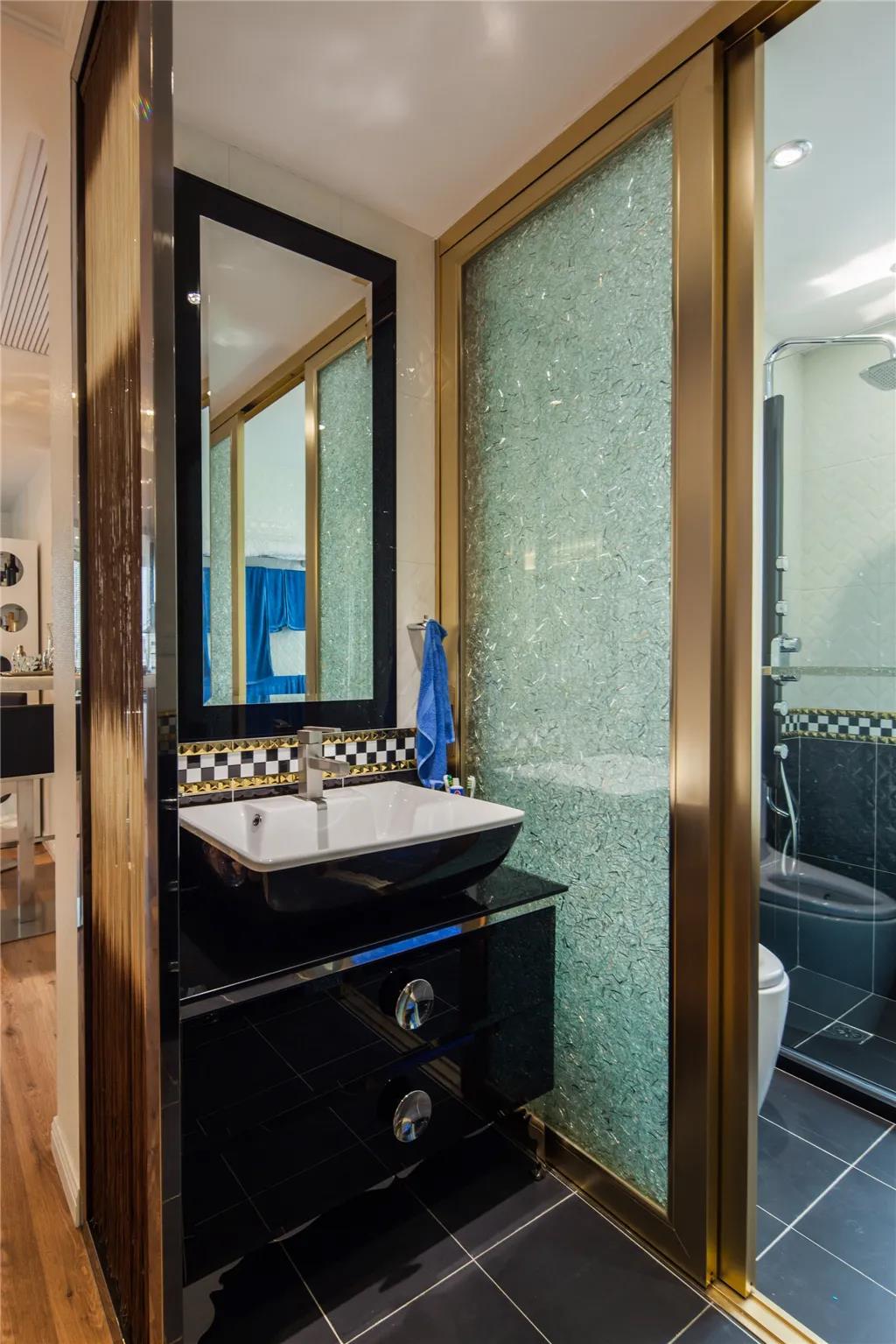 卫生间拉门是金属材质的,很有时尚感,干湿分离很实用。