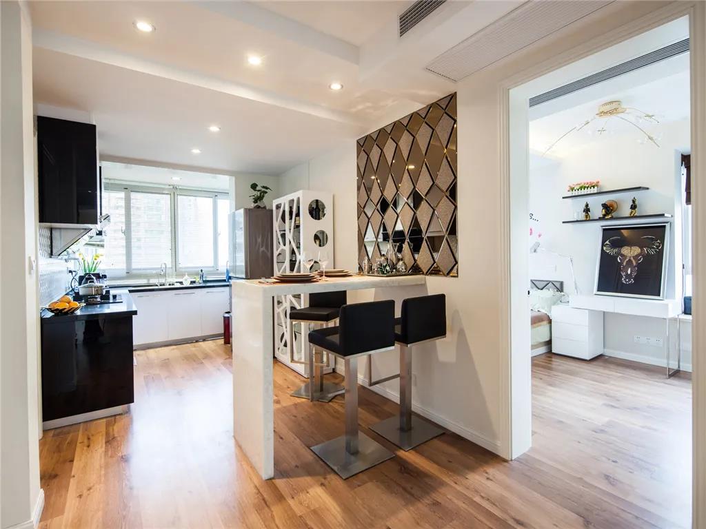 餐厅很小,在厨房旁边做了个小吧台,也满足两个人的需要。