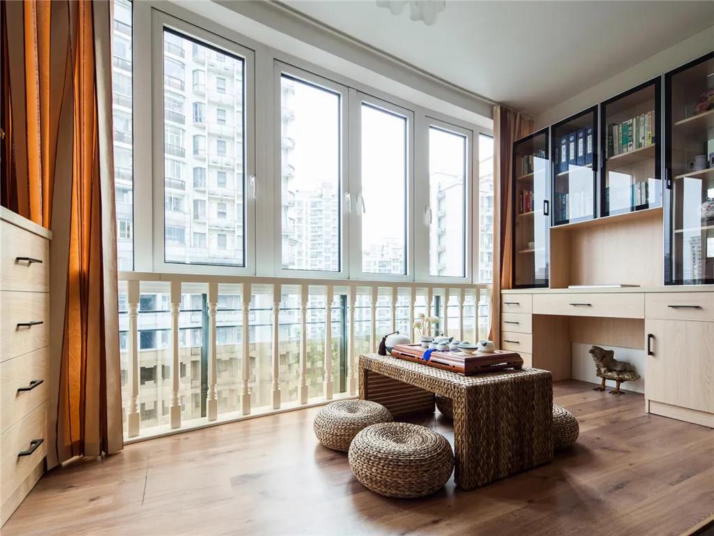 阳台没有用来洗晒,做成榻榻米可以当休闲区使用,为家里增添了一点浪漫。