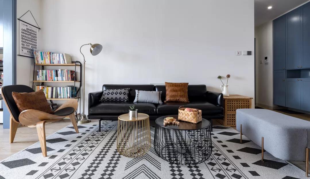 丢掉了笨重的大理石茶几,选择了简单有设计感的金属铁艺茶几,装饰作用还是很强的,黑色皮质亮光沙发,易清洁易保养。旁边的单人座椅造型独特,稍微带凹式,符合人体美学,轻松舒适,不会感觉很硬。