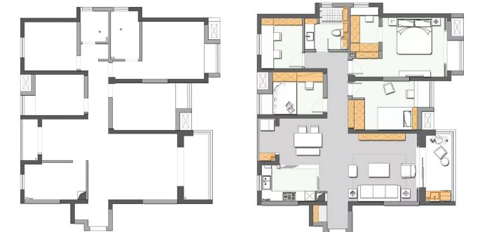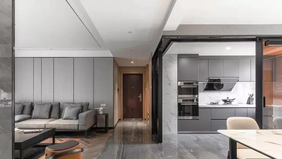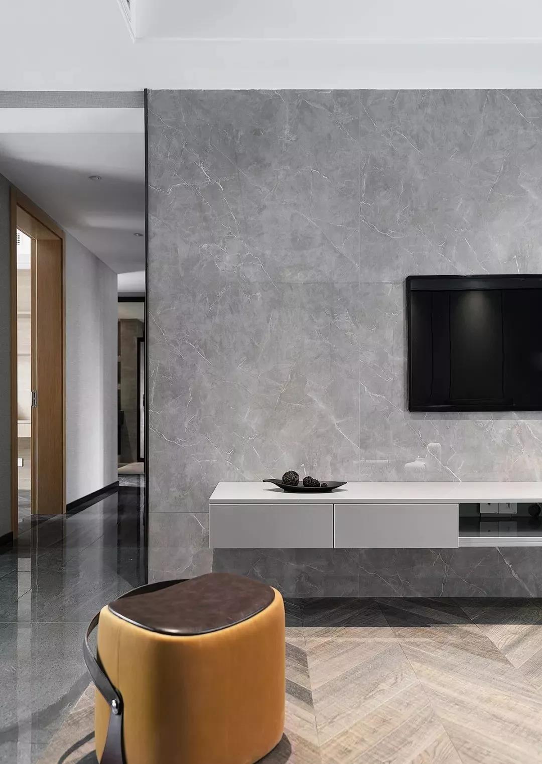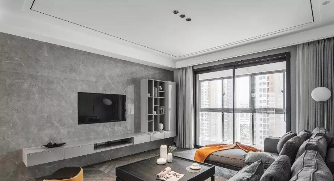 一套面积为140平米的现代风三居,整个空间以灰为主调,非常有质感,为了避免空间过于清冷,设计师在每个空间中加入了橙色进行点缀,那一抹暖意,不多不少恰到好处。