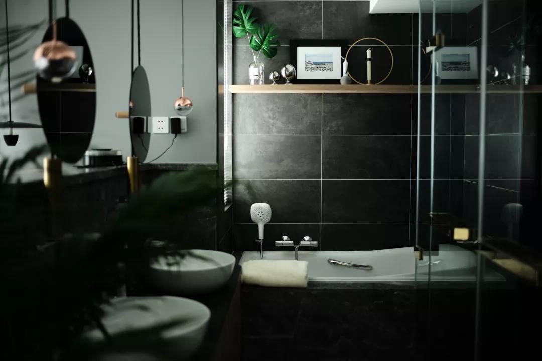 ▲在暗色的端庄空间下设一个浴缸,为主人提供了一个稳重舒适的泡浴空间。