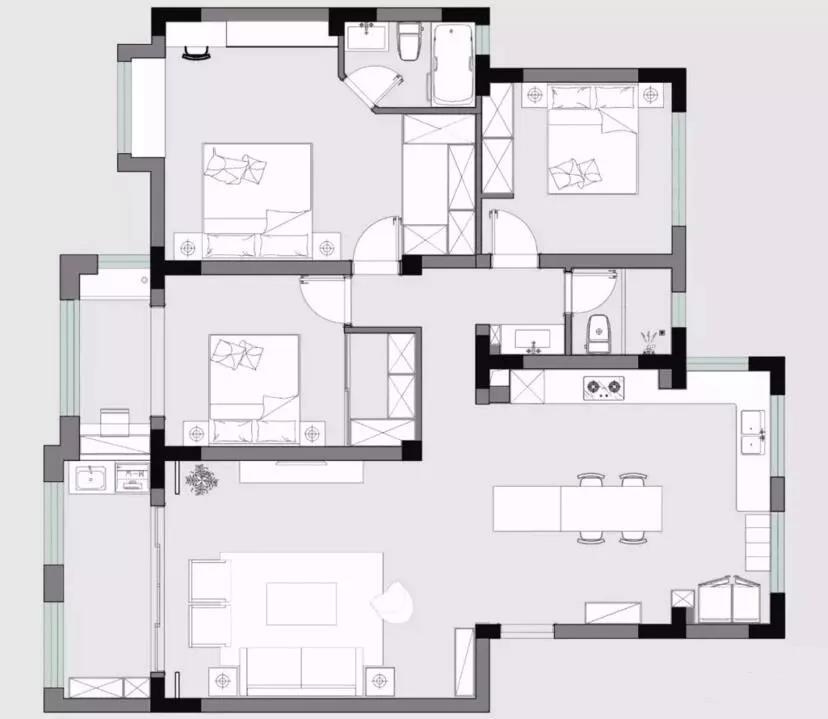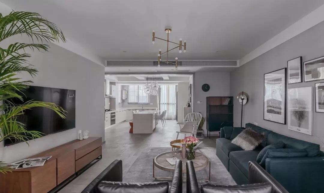 一套建筑面积125平的现代北欧三居室,房子的格局算是比较端正的,设计师选择了以灰色调作为主色,加入优雅而又精致的软装,来营造出一个轻奢有格调的居住氛围,尤其是这个开放式的餐厨,让人感觉真时尚。