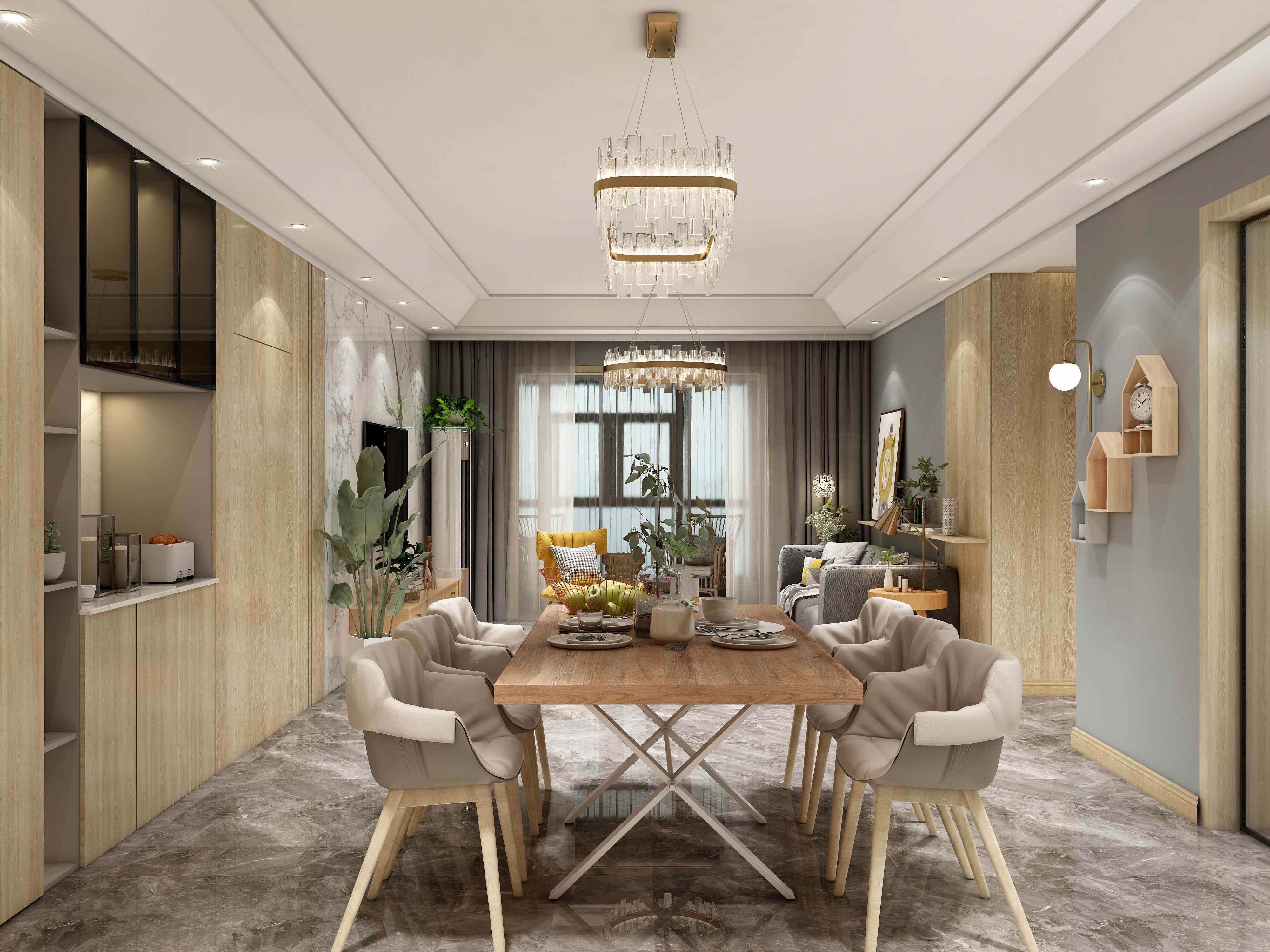 原木色的家具,既能从视觉上让整个空间更加清爽,又能满足女主人收纳的需求。搭配绿植装饰更加生动温馨。