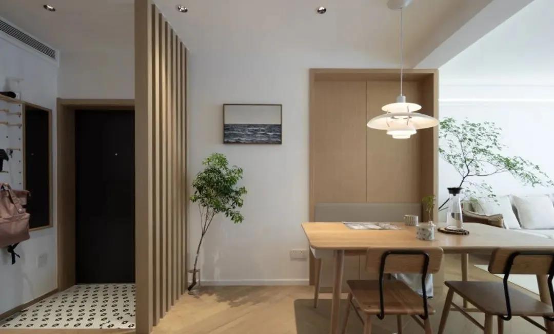 清爽舒适的106平日式原木风格新房装修案例一起来欣赏一下。玄关进来旁边是卡座餐厅,小巧不占地。