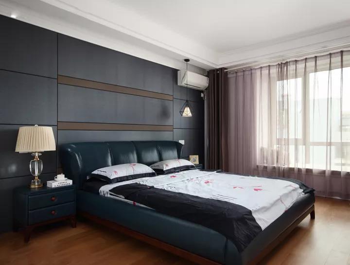 主卧室的床头背景墙做了硬包的造型,和皮艺的床头靠背结合起来,给人一种小资、轻奢的感觉,深蓝色、蓝色与淡粉色的搭配,时尚而又。