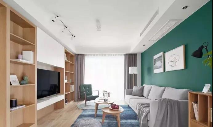 106平米的两居室装修,整体以原木风为主,墨绿色点缀,虽然没有非常惊艳,但是电视墙的设计真的让人很喜欢,采用柜子造型,兼具了收纳和展示效果,整个空间舒适自然。