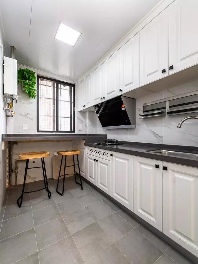 厨房也是非常漂亮的,而且还有一个很时尚的简易吧台呢