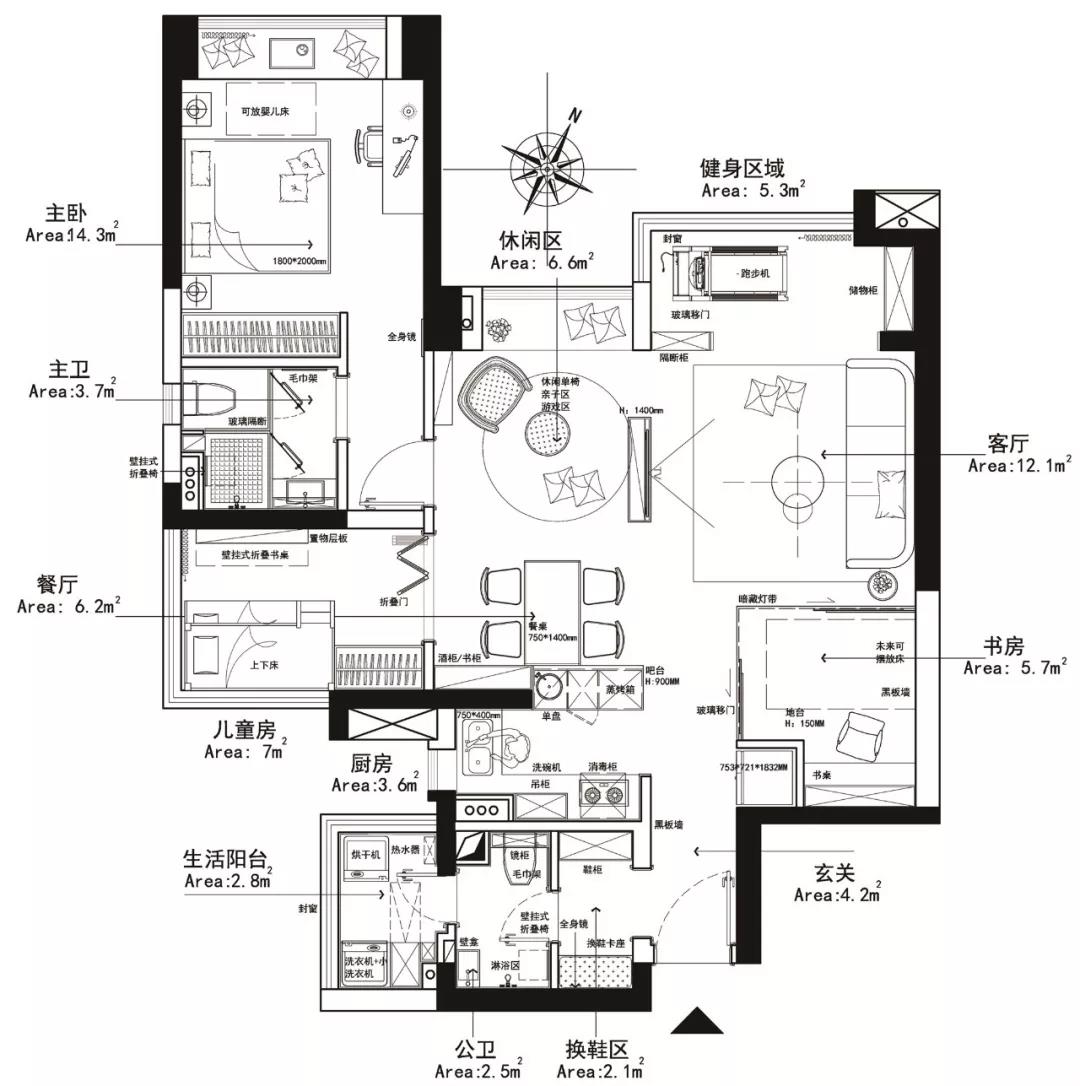 一套建筑面积96平米的现代简约风小三房案例,除了两个卧室外,设计师还隔出了一个迷你的书房。房子原本的格局并不好,设计师把客餐厅改成开放式的格局,并且舍弃了电视,把客厅当成一个休闲区,别有一番趣味性。
