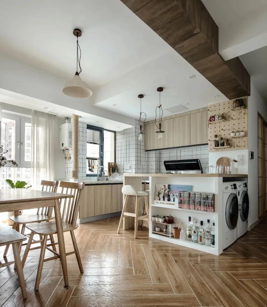 【红杉树装饰】80㎡简约原木风格,开放式餐厨区太棒了!