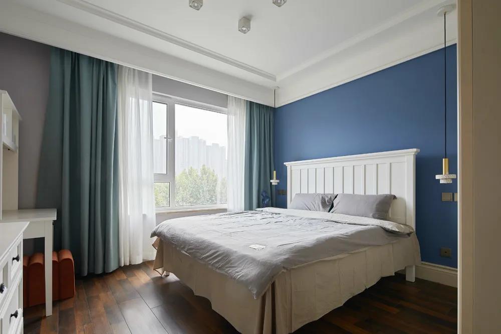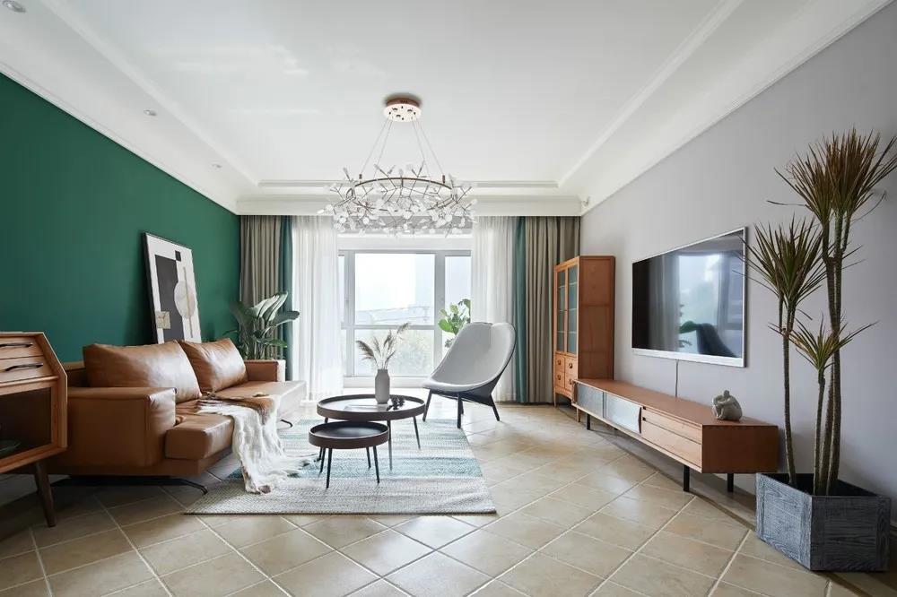 120㎡现代美式风格装修,墨绿沙发墙小资格调